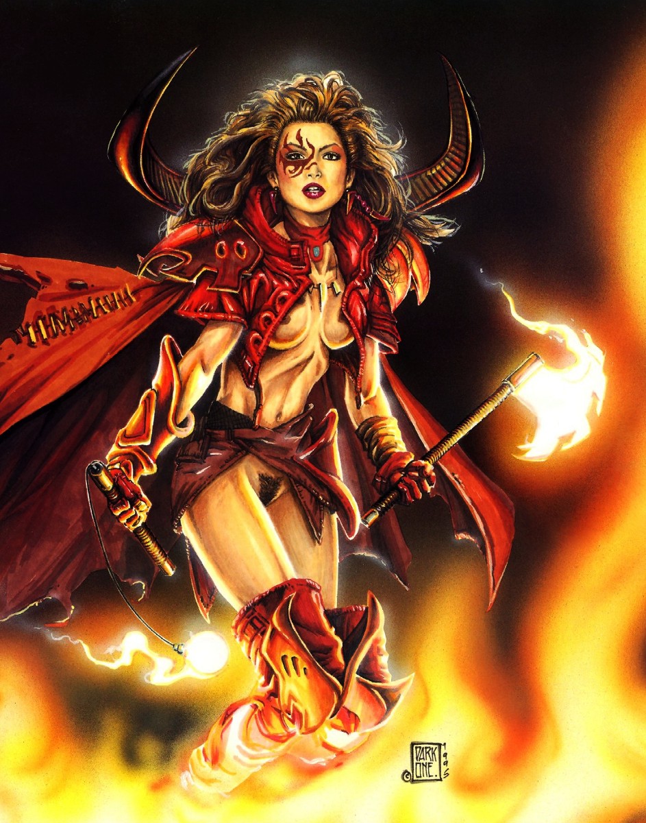 >>9102167Caldwell and Elmore did a lot of unofficial nekkid art, even of official characters. I don't know the exact reasons - boredom/fun, practice, filling out their portfolios - but I'm pretty sure they have official websites with galleries full of all kinds of stuff, a lot of which TSR would never had been able to print in D&D products because dragons burning down villages and heroes chopping the heads off goblins is fine, but if anybody suffers a Wardrobe Malfunction then the busybodies gets all THINK OF THE CHILDREN.