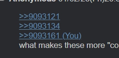 >>9093121>>9093134>>9093161what makes these more "complex" and "elaborate" that you couldn't spam them in the regular thread, spambo?