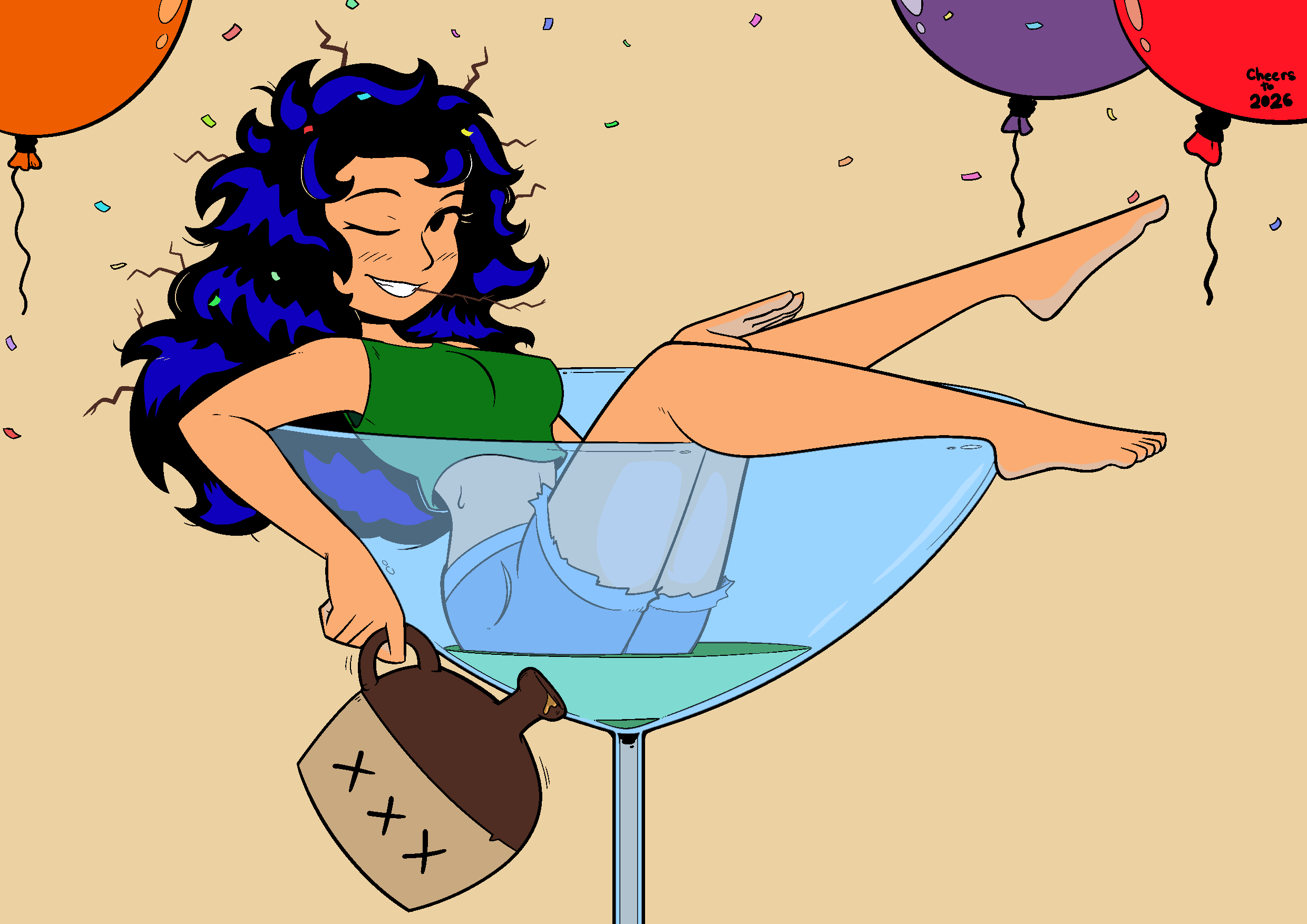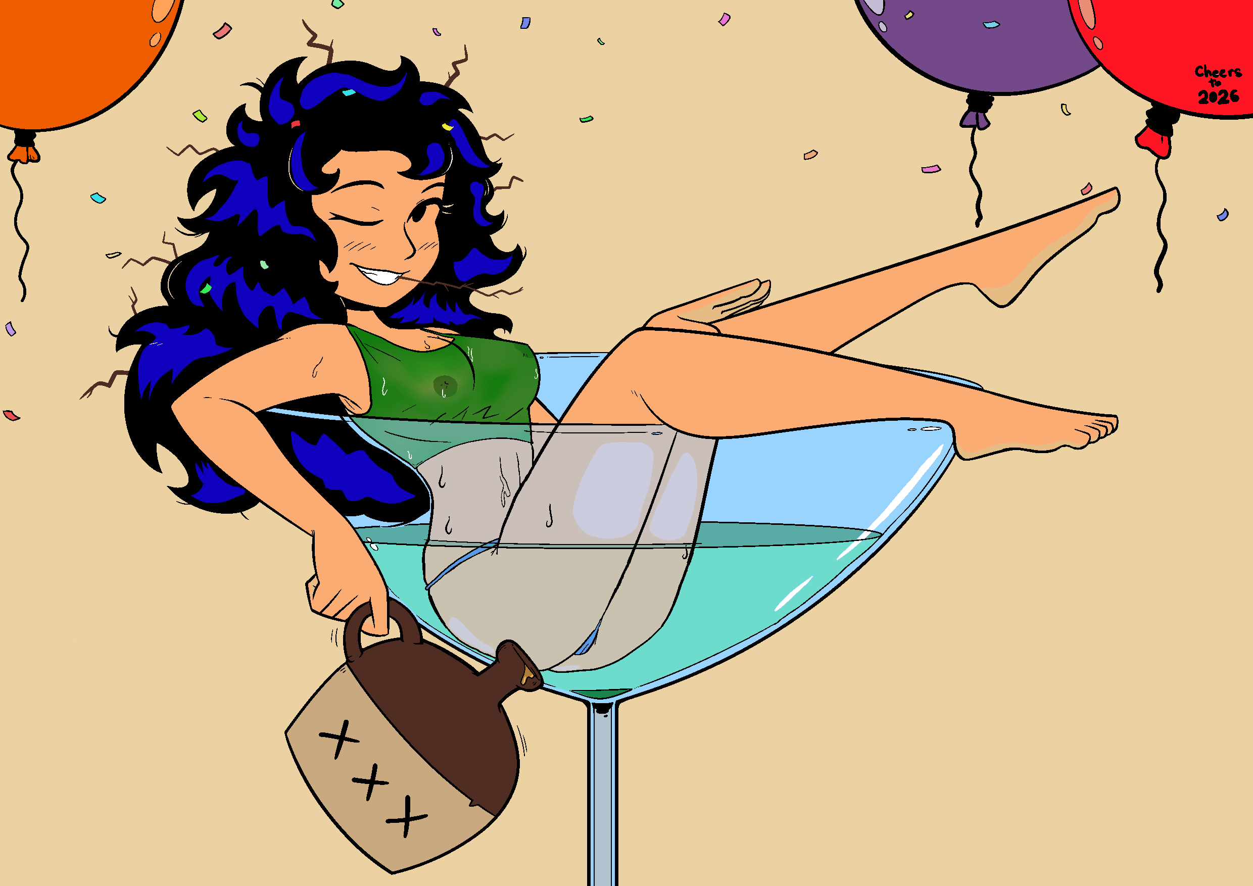 Requesting the glass is full of liquid and Daisy wearing a tighter and transparent top. (maybe a thong or shorter and tighter "Daisy Dukes"