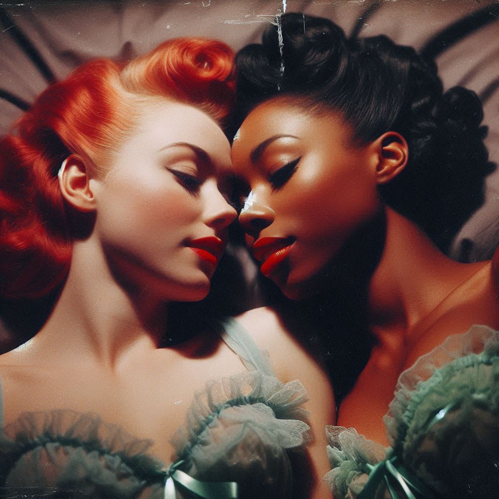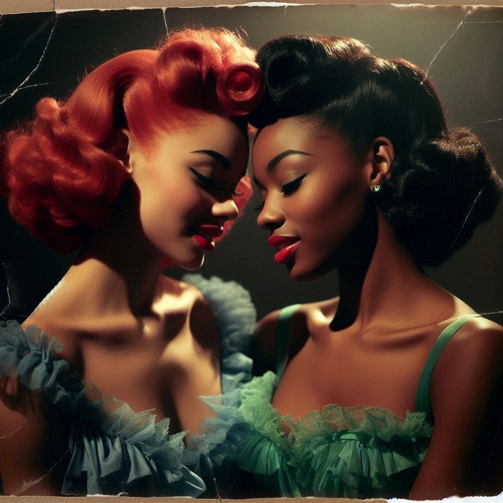 >mixed modelHere's a DALL-E gen from 2023 that used to semi-reliably draw bald women and cocks coming out the hole in the wall, told in Gemini to make it into a 1983 German new wave album cover with a band name and title.