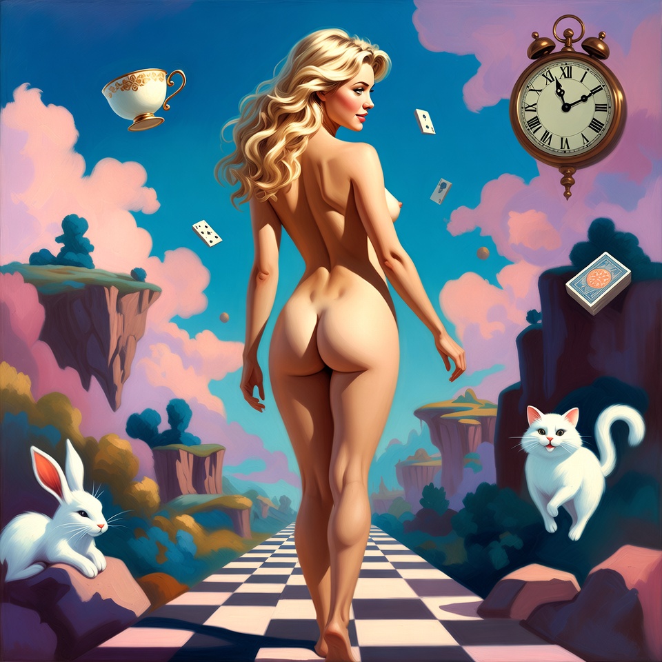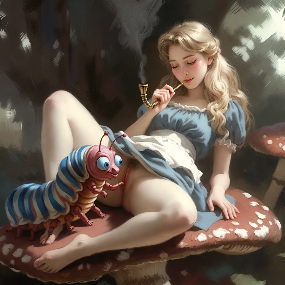 >>9108240Another adult Alice I did. I didn't even prompt nudity, I just said "legs spread" and "skirt hiked up".