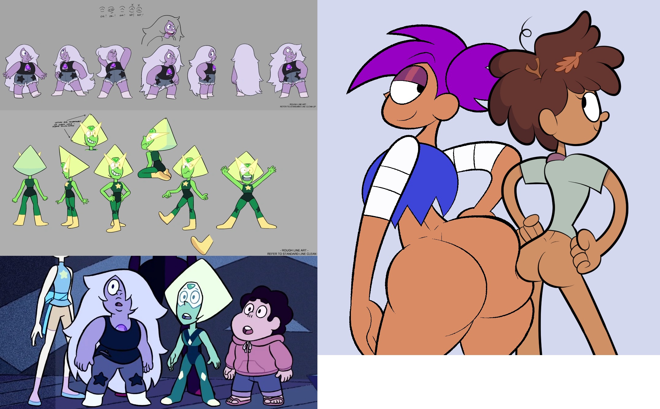 Requesting Amethyst's massive ass and Peridot's petite butt pressed together.
