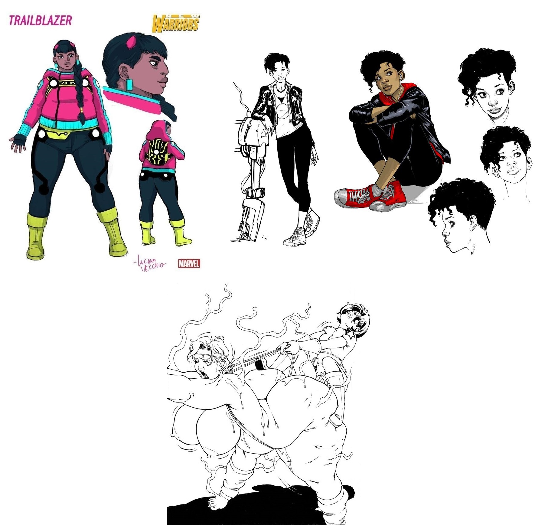Requesting Trailblazer, from the New Warriors, getting fucked by Riri Williams with a strap-on like in the image on the bottom.