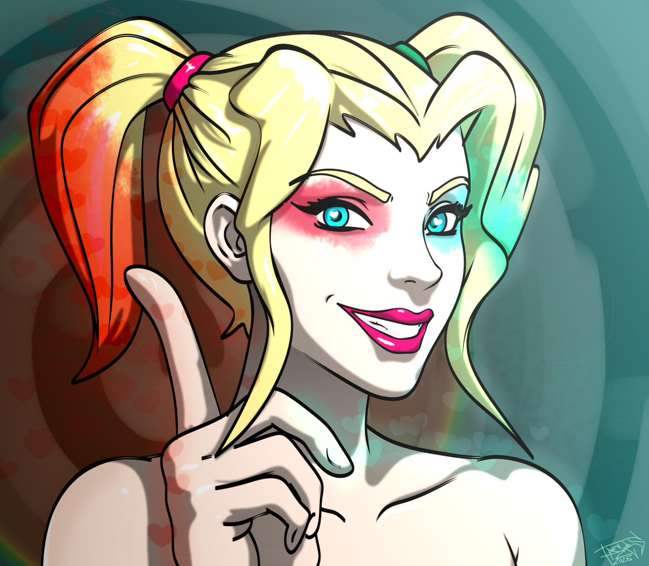 Requesting femboy Double Trouble in a black cocktail dress with their cock tucked into their thigh highs like the girl on the right but have them winking and flashing a nipple. No, or very small, breasts.