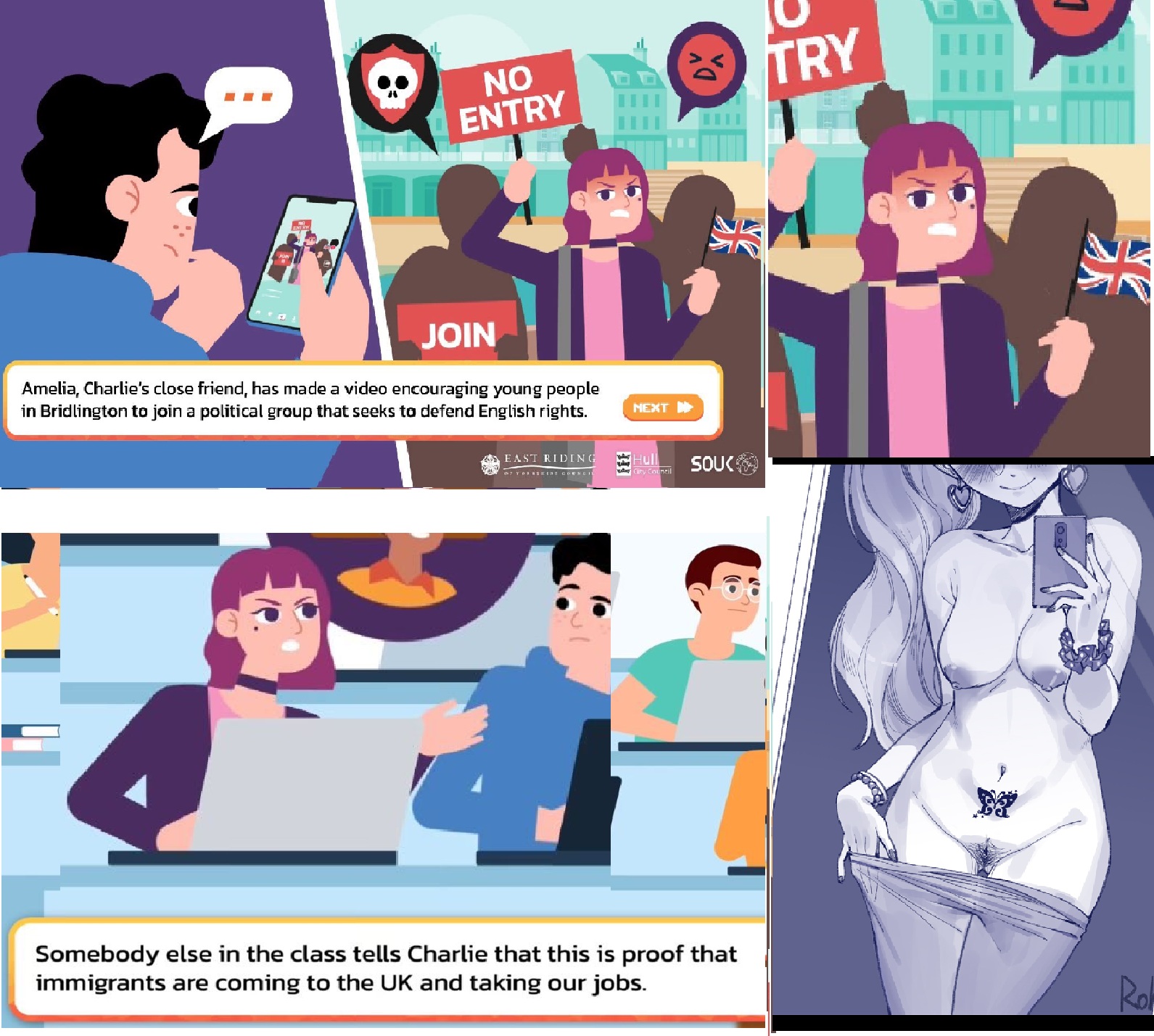 Requesting anything with PreventUK's latest racist waifu Amelia from the educational 'game' Pathways.(yes the yookay government made a flash game aimed at stopping schoolchildren from becoming right-wing chuds, and the pro-white anti immigration stand-in is a cute alt girl with dyed hair)Hoping for something with her doing a mirror selfie, either nude or whatever kind of outfit takes your fancy.