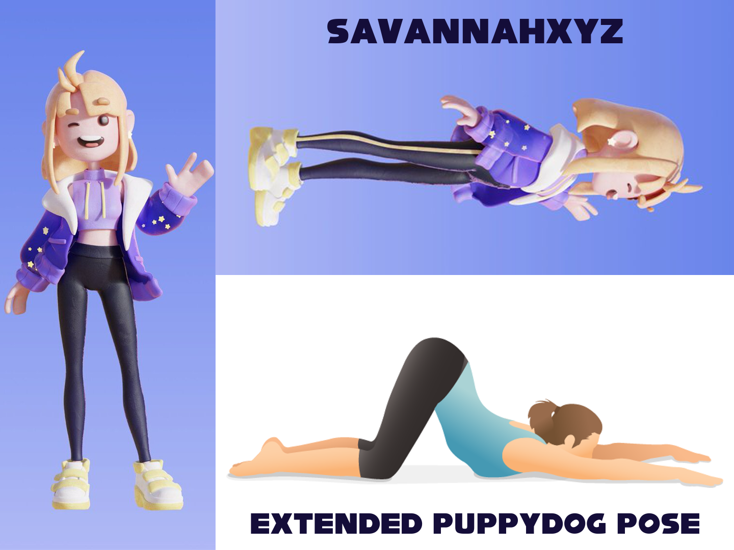 Requesting Savannahxyz in the "extended puppy pose"Prone, head forward, back archedhttps://files.catbox.moe/mzsyyp.jpghttps://files.catbox.moe/zkft6u.jpeg>>9101540Making this request to show off Savannah's tall slim body and legs. I like her 2.0 model's longer proportions.