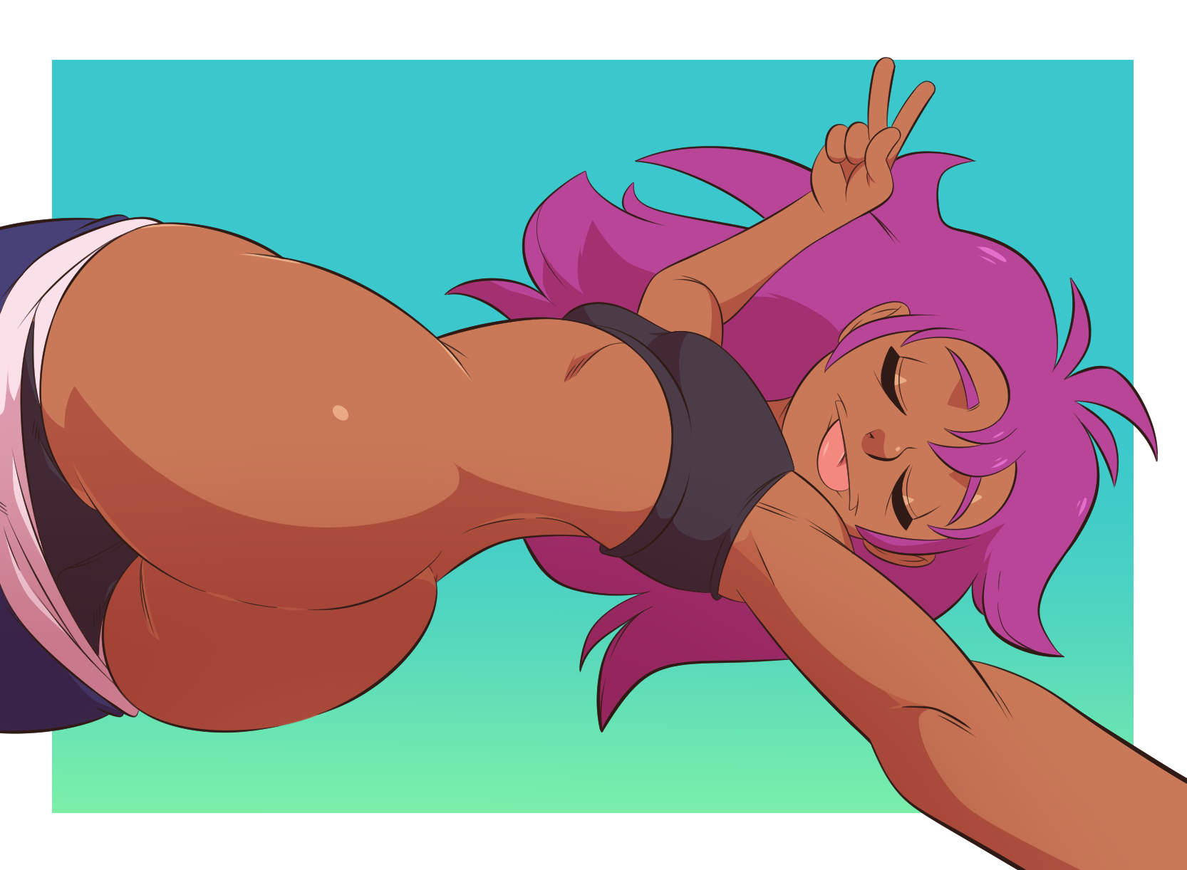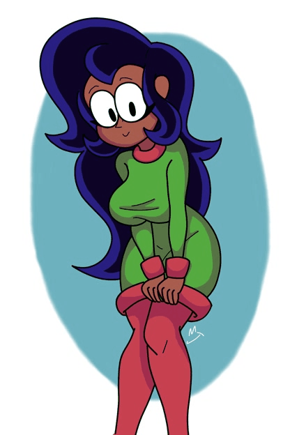 Closeup of Enid's big cameltoe in her tight shorts. Or just her ass in them.