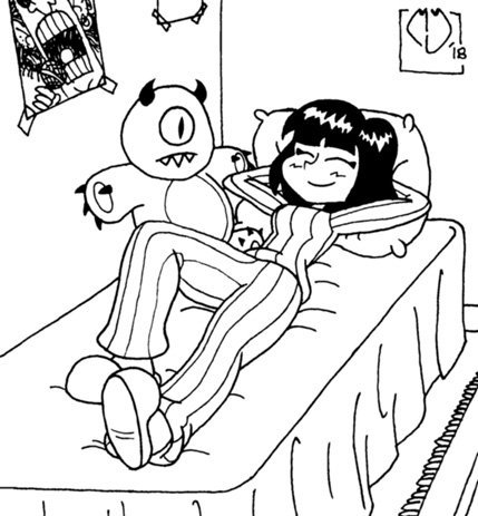 Demon Queenie wearing these pajamas and sitting on the toilet.
