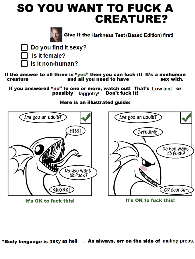 >>9125071The sexy xeno creatures I wanna fuck would.I don't subscribe to your idea of "abuse." If there's a xeno creature presenting itself to me, or not actively trying to avoid or show discomfort from penetration, I don't consider it abuse, regardless of intelligence level. If you aren't retarded, you can pretty easily read body language and behavior.Shove your idea of abuse and consent up your ass lol.Anyways, back to /xeno/ posting.