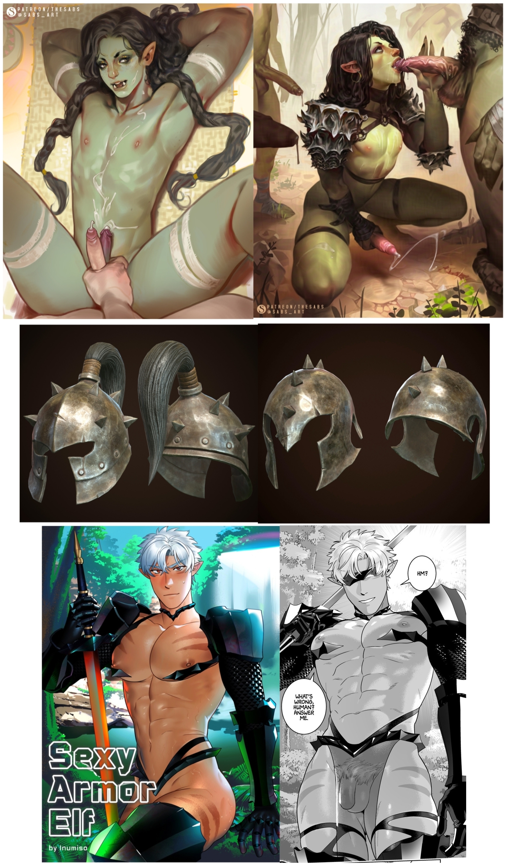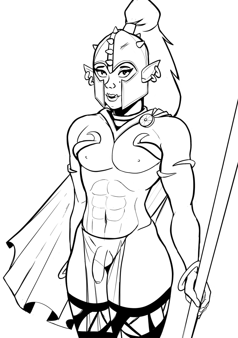 >>9108708Requesting a femboy orc, he should have a spiky helmet and armor that shows it all.