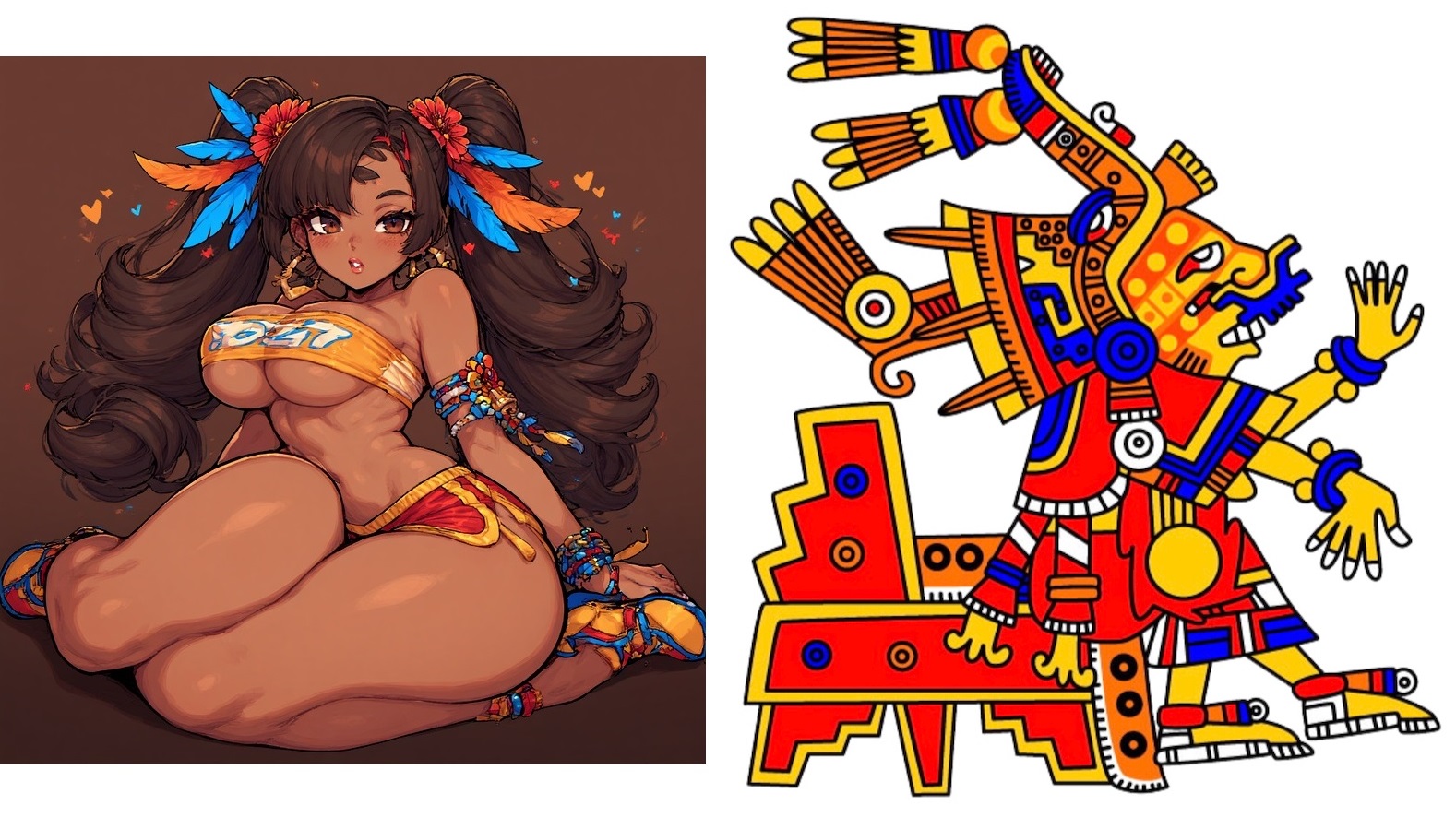 Requesting an interpretation of the image on right, with the girl on the left. Or just your own take of a voluptuous Brown girl in the same pose as the image on the right. Side-view, sitting down, doing that thing with her hands, slightly looking up. With the addition of a little nose-ring piercing.