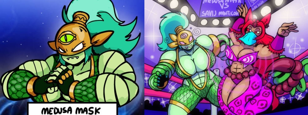 Requesting medusa mask to be put into a humiliating pose with her clothes ripped as she is losing her fight.Heres a ref for you to choose what pic of different scenarios:1. Being carried and having her torn clothes showing her butt.2. Being put into a muscle buster spreading her legs wide open showing her camel toe3. Pinned against a small person having her butt full on screen.4. Is put into a full Nelson 5. Is stuck in a humiliating submission with her legs wide open. https://files.catbox.moe/gv76fa.png