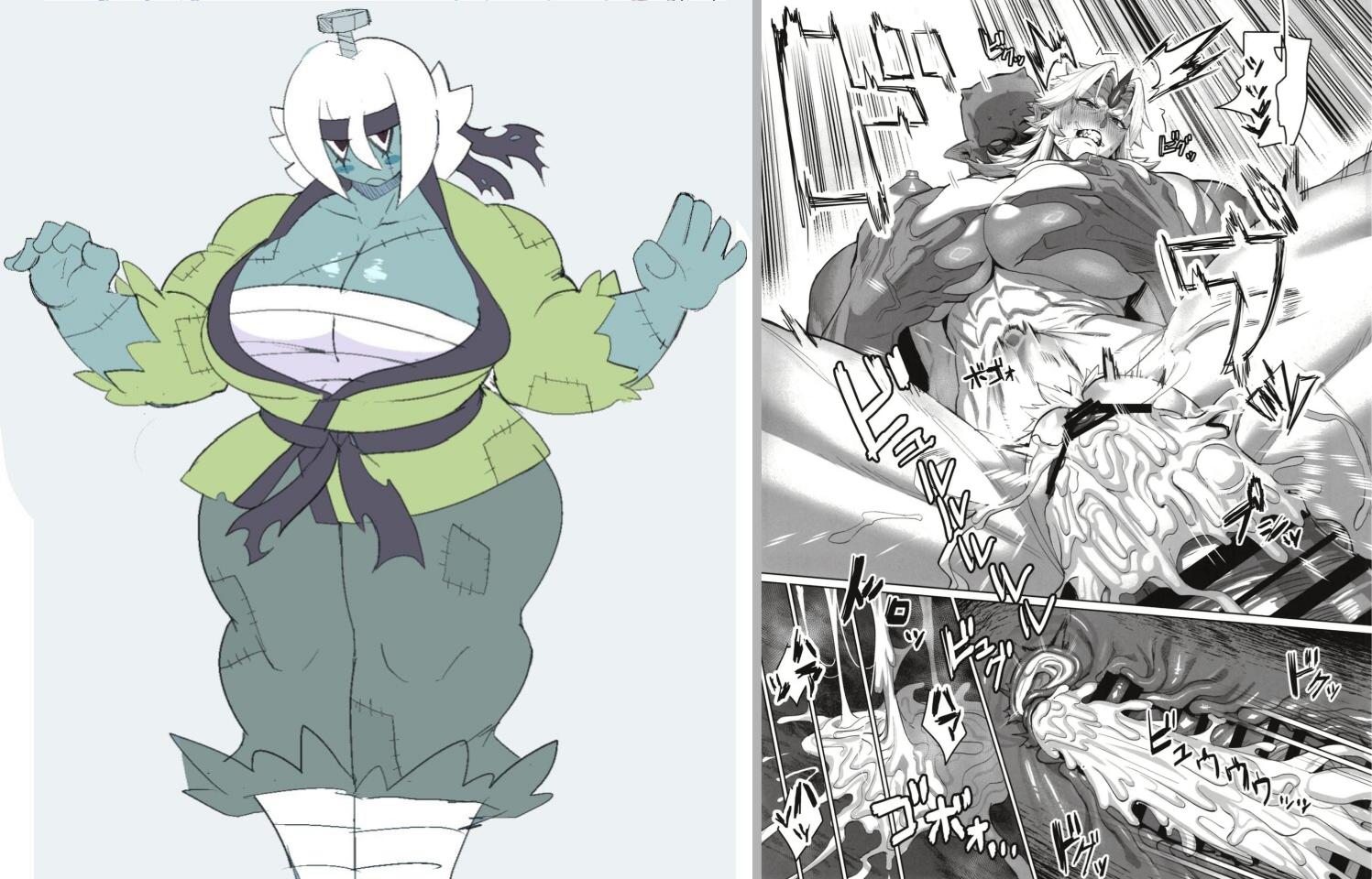 Requesting this big Frankenstein monster girl oc to be drawn just like this top manga panel please