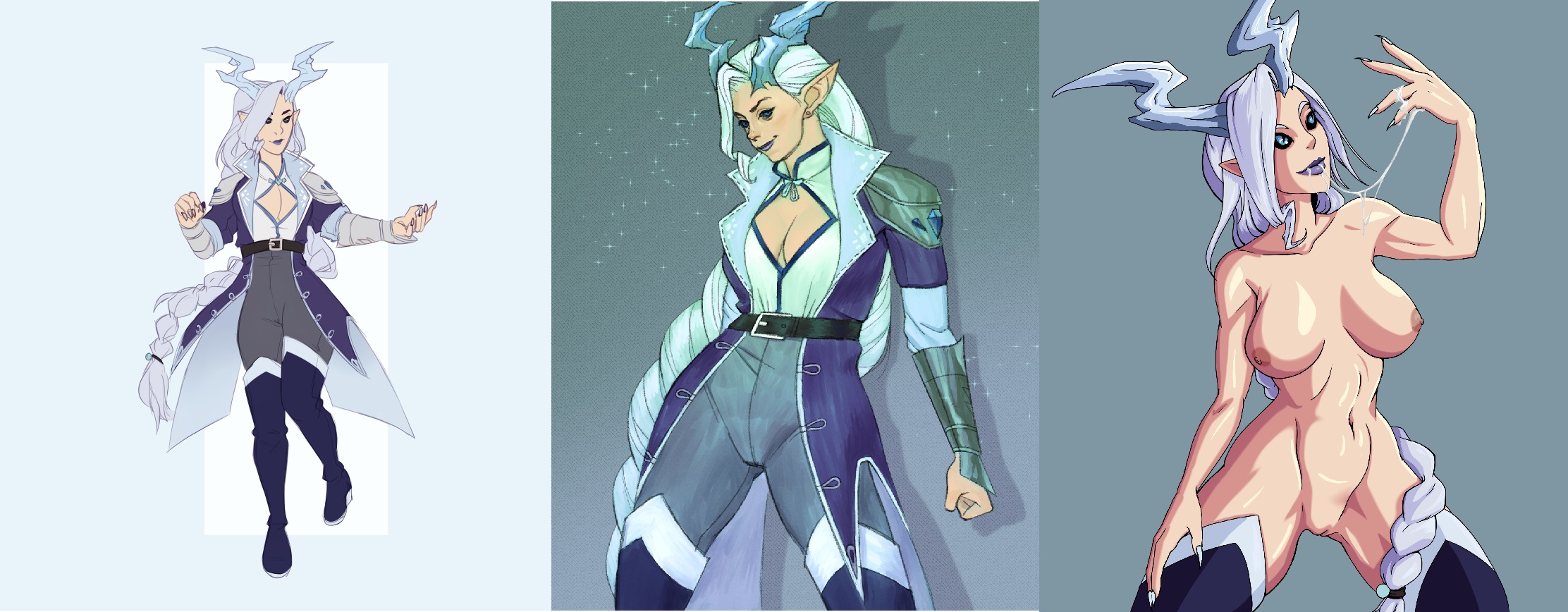 Didn't get lucky first time so trying again.Requesting either of my wow dwarf girls.Left is wildhammer Hidi Hinterpeak and right is dark iron Diuna Cinderhammer. Whichever you feel like, slightly thick (like the ingame body) but bigger breasts. Both need bit of tummy like on reference, but not too much, they are both active warriors. And they both have thick bush, same colour as their hair of course. Pose can be like shown or whatever you feel like, I don't mind either way. I wouldn't mind if there was cum covered alt. Thanks in advance