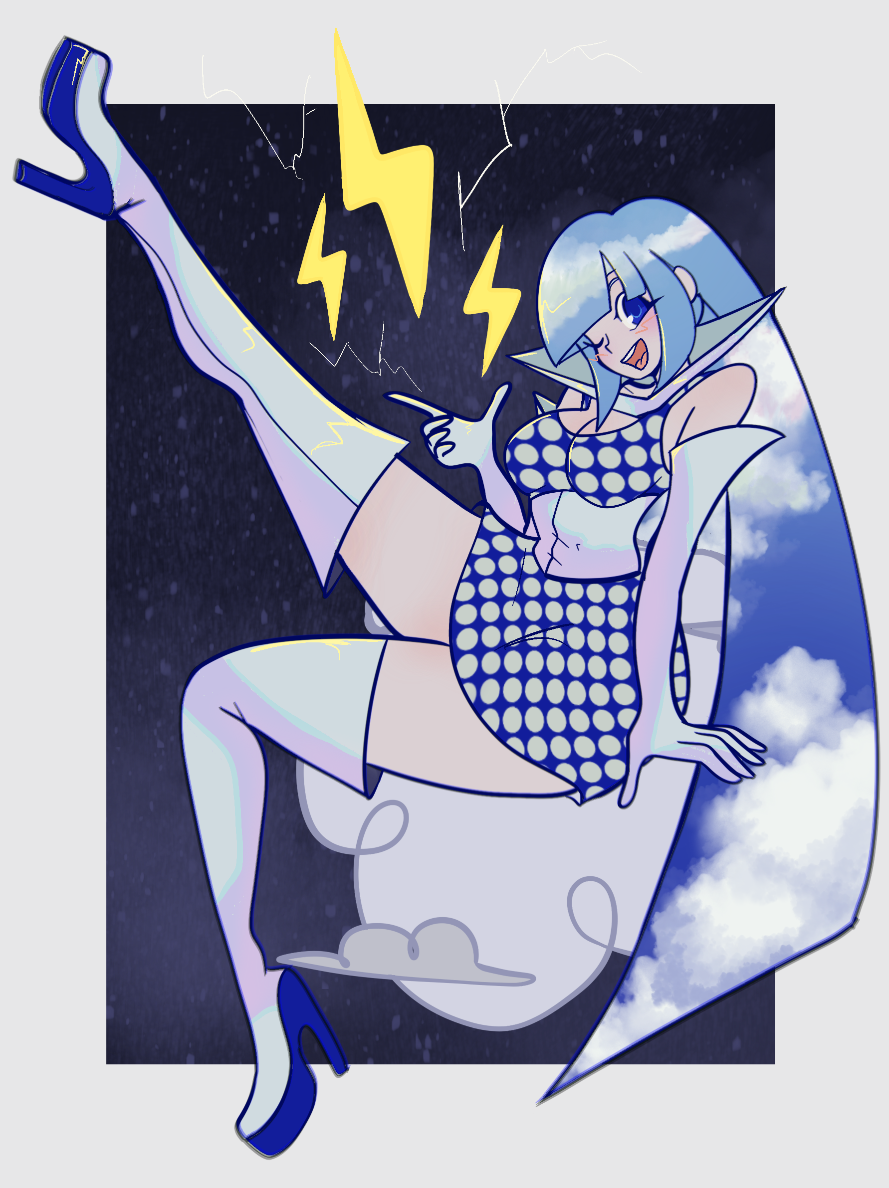 >>9108708Requesting whatever you wanna do of my OC Thyella Blue. She’s got weather powers and her hair is basically just a green screen with a weather pattern over it if you don’t like drawing clouds and stuff. Also she’s 7 feet tall and loves teasing human men.