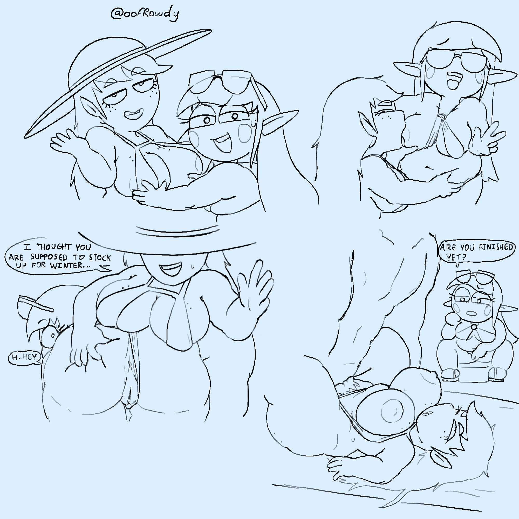 >>9124371>>9124374Sounds to me like there's a goblin nest up in those hills. Logically what we should do is pool together a bag of gold large enough to attract some strapping humie adventurers to go and rescue those NSFW artists from their nefarious clutches.>>9124432Thanks again for wrangling that rag-tag band of sexy misfits into an actual team.