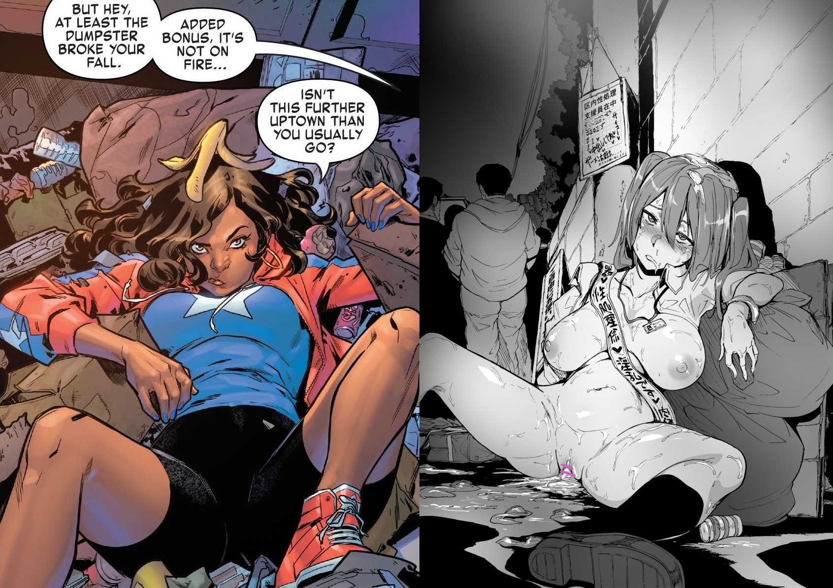 >>9113901Requesting a redraw of the America Chavez panel on the left, but with it looking like in the image on the right.