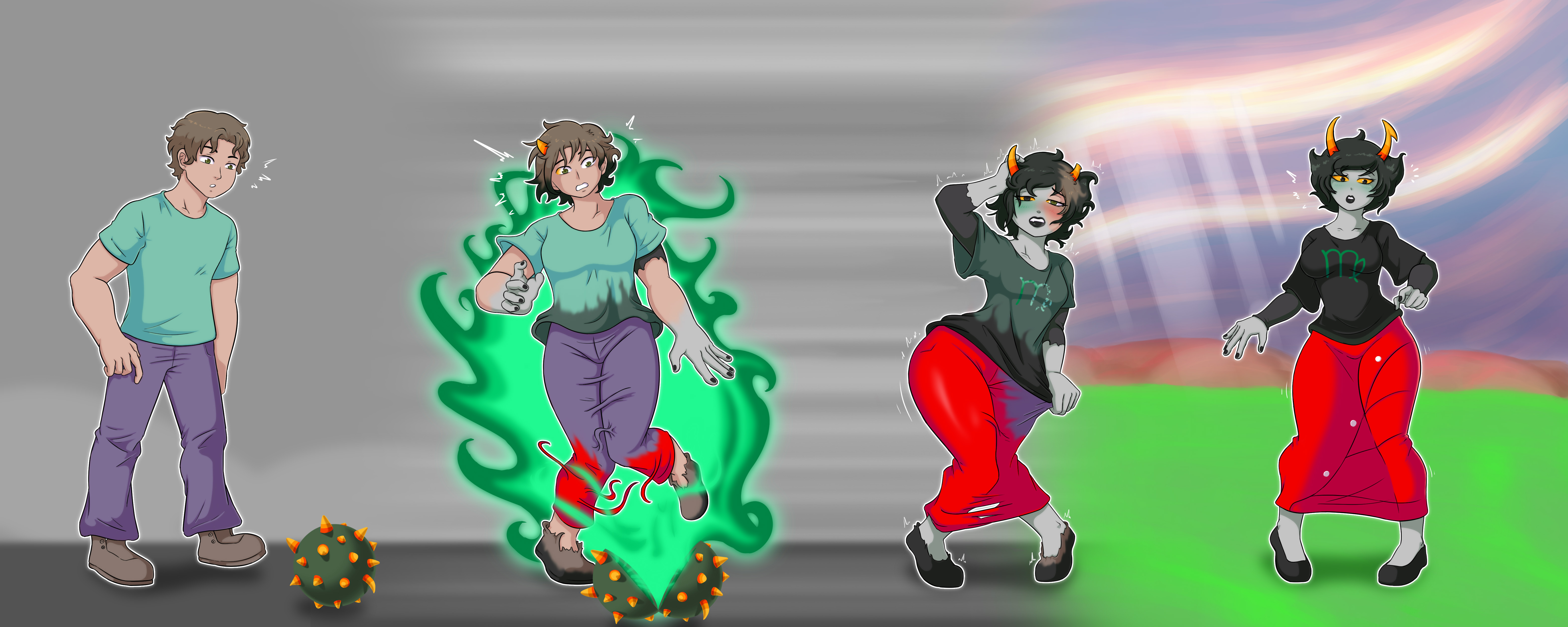 >>9124250Yet another 'Homestuck if it were good' retelling. Culled cast of 4 trolls to 4 kids.