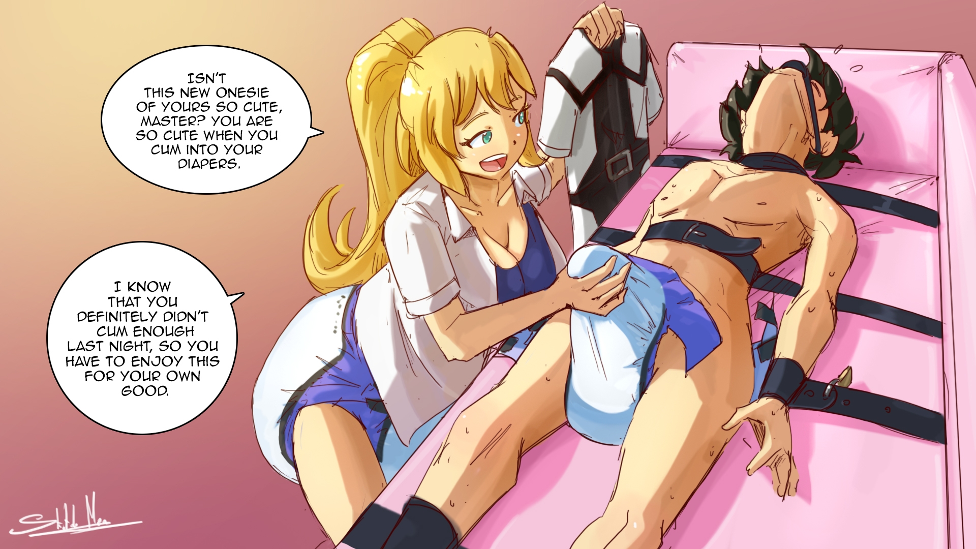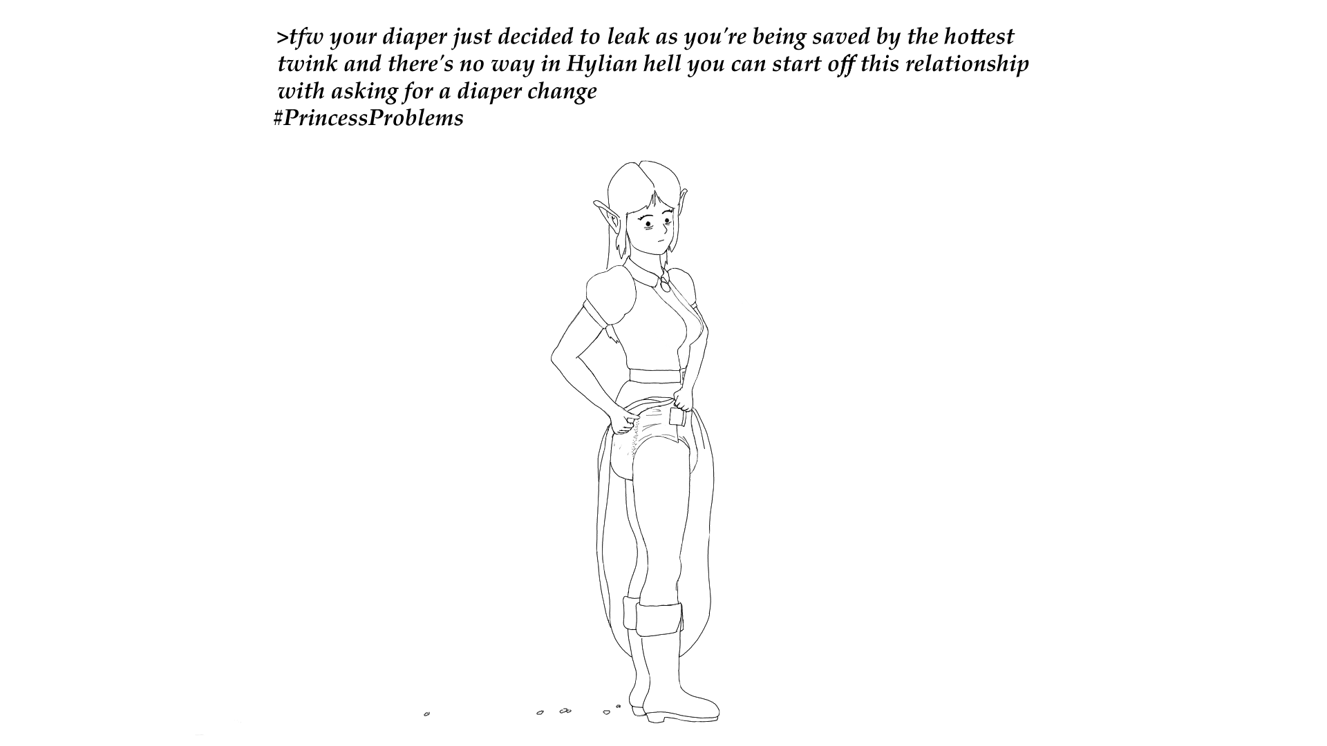 >>9132986>getting into a feedback loop of horniness and pleasureI think this happened to me before>>9132987Zee also did a similar pic I think with a female goblin and a male orchestra (that suspiciously looked like Zee's OC). The best part is the goblin saying "down boy" during a diaper change