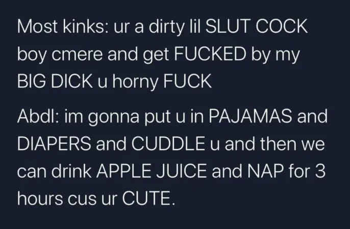 >>9125781I feel like it's a cursed fetish because people all have different aspects that are actually their fetish but they're all lumped together into "ABDL." I am mostly into BDSM with a cutesy aesthetic, with Mommy Roleplay mixed in, but others seem to enjoy just Cute Girl Wearing Diaper or they're actual scat fetishists.