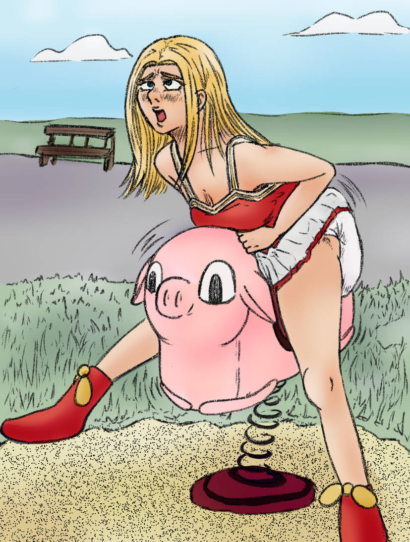 >>9125639I'm reminded of a bouncer art where the bouncer is more like a tutu and there's a vibrator inside the diaper and they have to reach for the remote up high on the bouncer's frame by bouncing up and down. It's furry though.