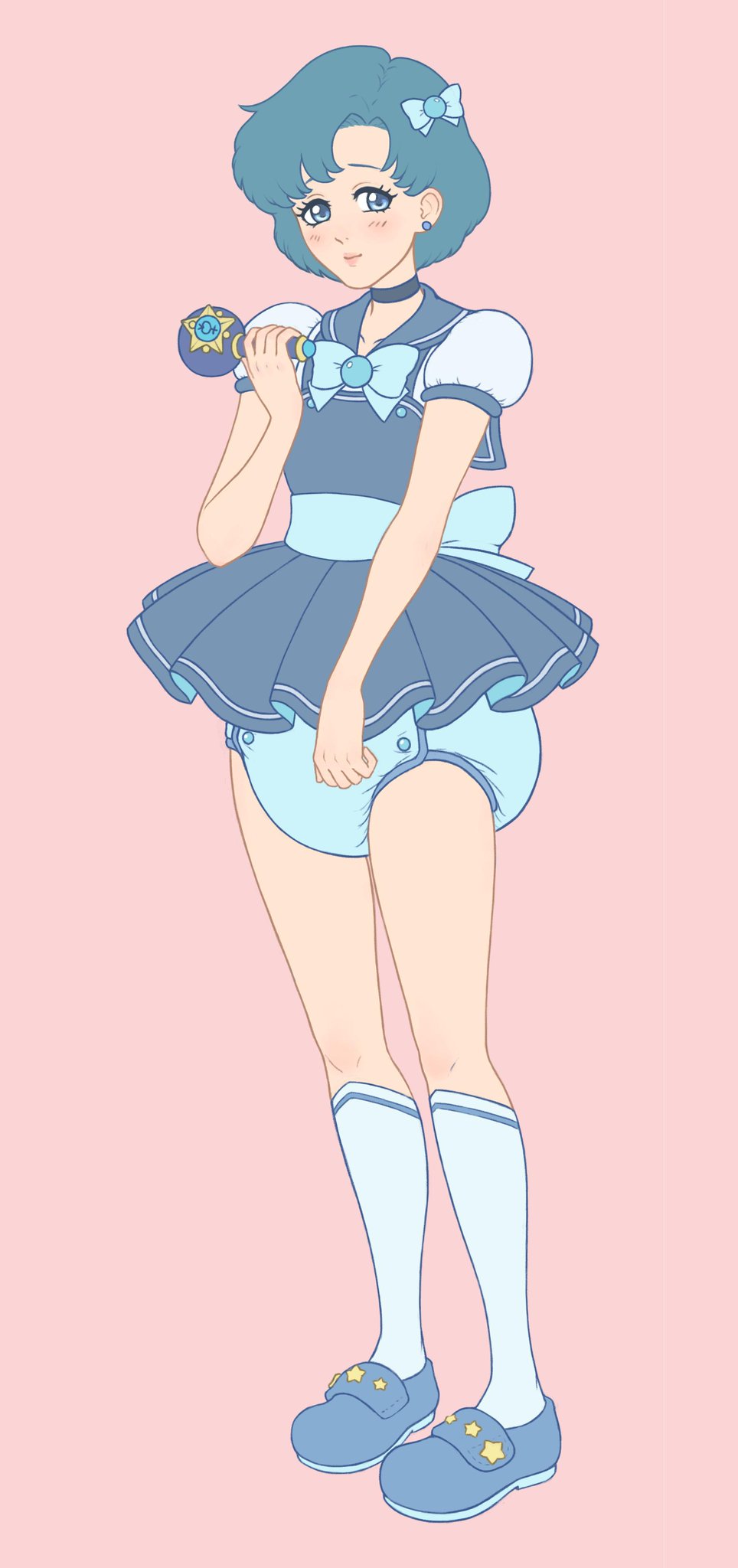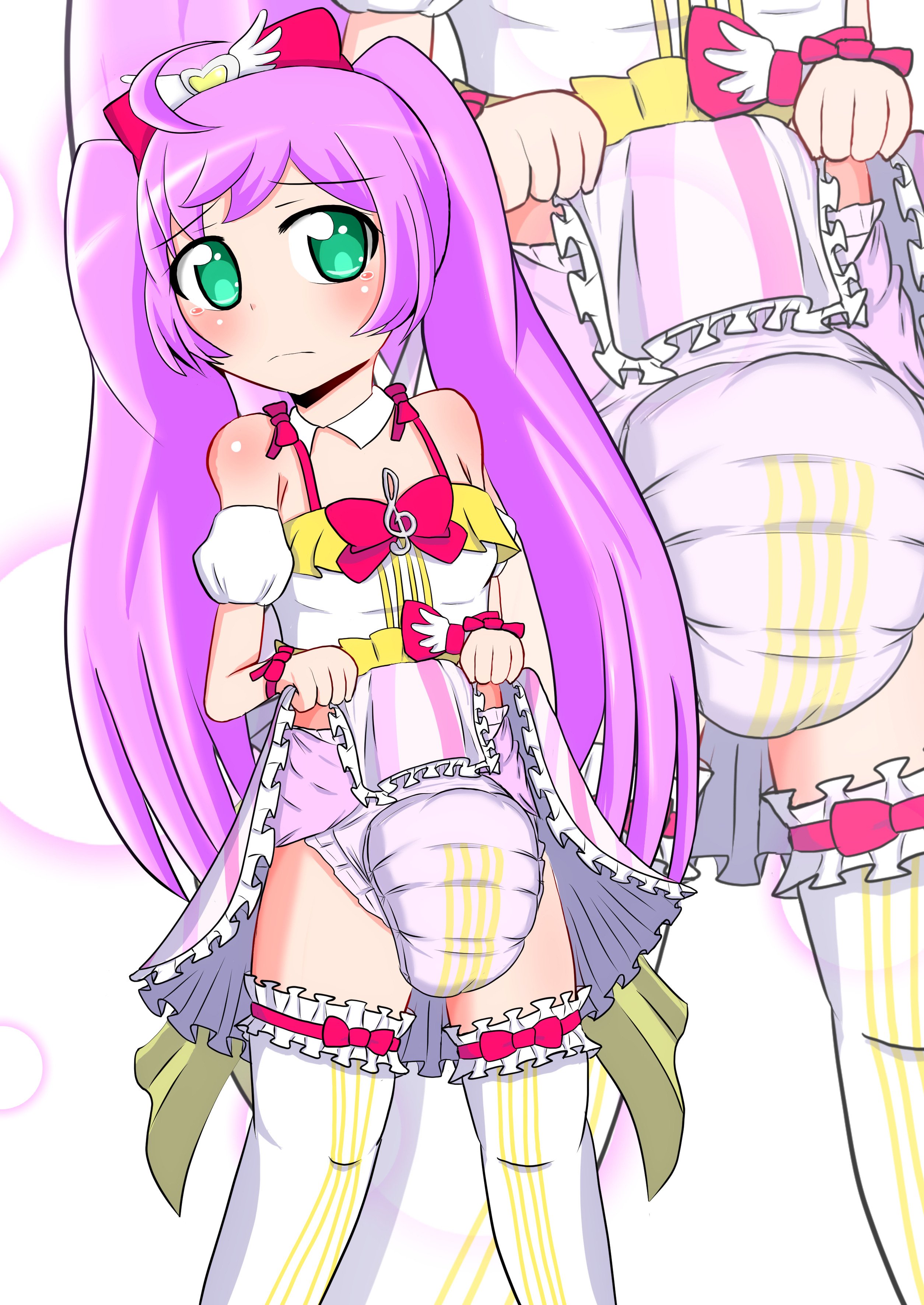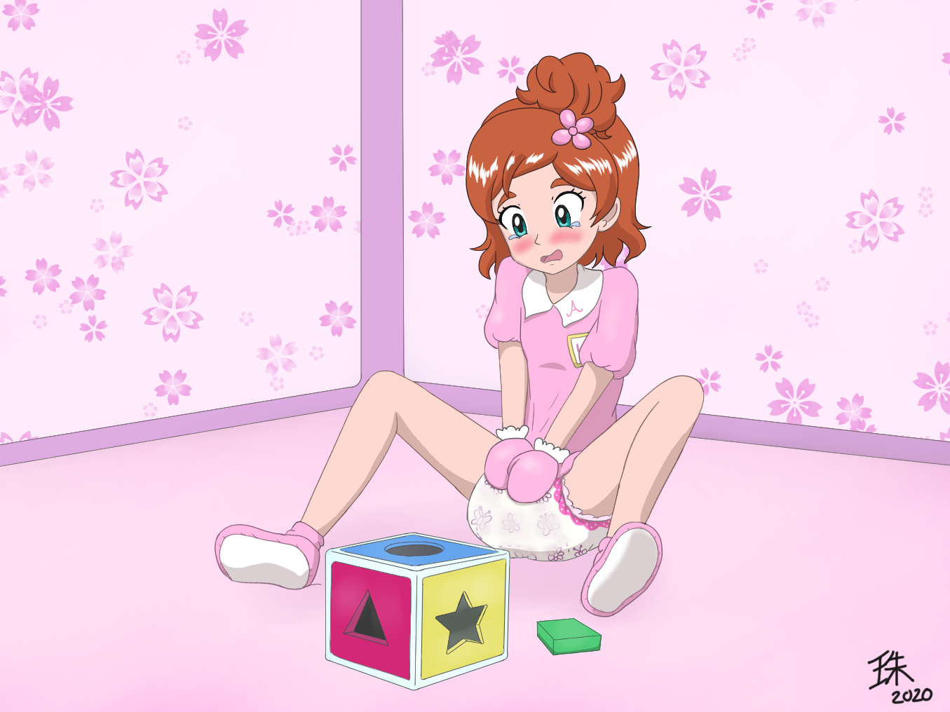 While adventuring in the archives, I noticed this post:>2014 Makoto Moriwaki began directing the children's anime "Pripara" for the next few years.>June 14, 2016 Pripara airs it's 100th episode, the plot of which involves a 13 year old girl being age regressed to a toddler upon being sucked into the pocket nursery of the magical tamagotchi baby she was supposed to be watching.>2019 Moriwaki begins directing "Mairimashita! Iruma-kun"s anime adaptation.>Which has a character with an extremely similar abilitycoincidence? I think notJust to clear things up, the girl did not get age regressed but rather just got shrunk into baby sized. There was also no diaper shenanigans. It's worth mentioning that the magical baby she and the rest of the cast look after is actually a goddess who age-regressed into a baby but it also reluctantly age-regressed her twin sister, who still has her normal mind though is stuck in her own tamagotchi (there's even one scene where she goes on the potty though she was wearing her onesie with diaper underneath), unlike the aforementioned baby who can go out of it into the real world. Getting forced into a baby care game and being played with is a spicy scenario though. Anyway, Pretty and Aikatsu deserve more diaper art, they're much more baby-coded than Precure.