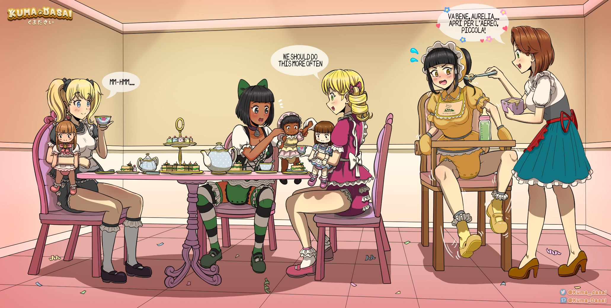 >>9132258My fave part of this set is the girl on the right. She clearly doesn't want to be part of the shenanigans. Force feeding until they explode in their pamps is top-tier. How humiliating she must feel doing it while in that baby get-up.