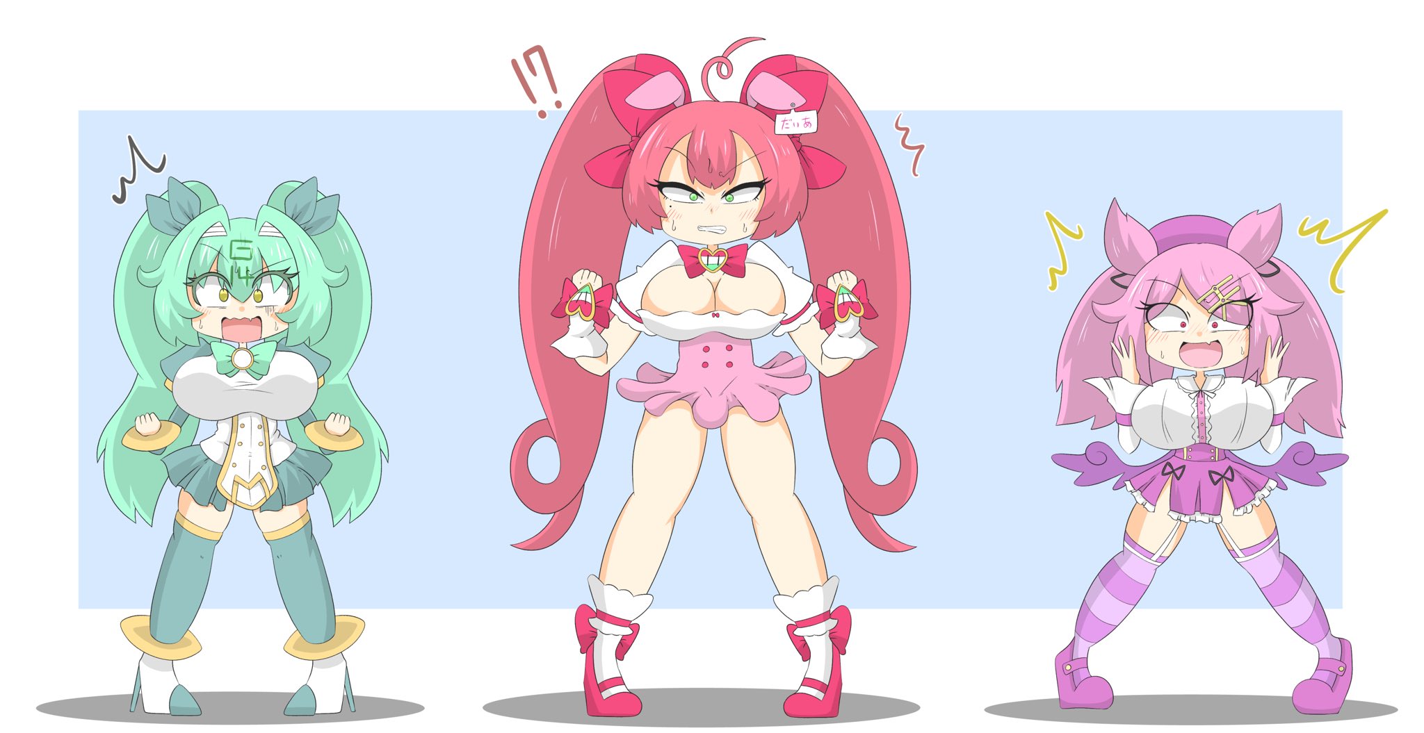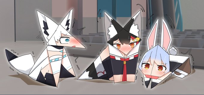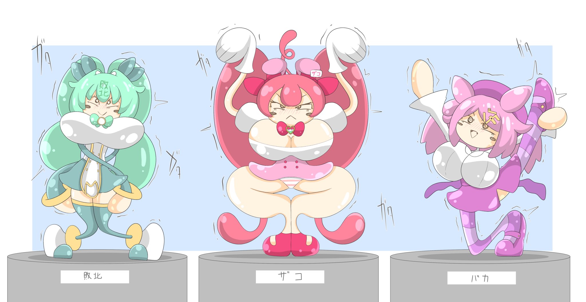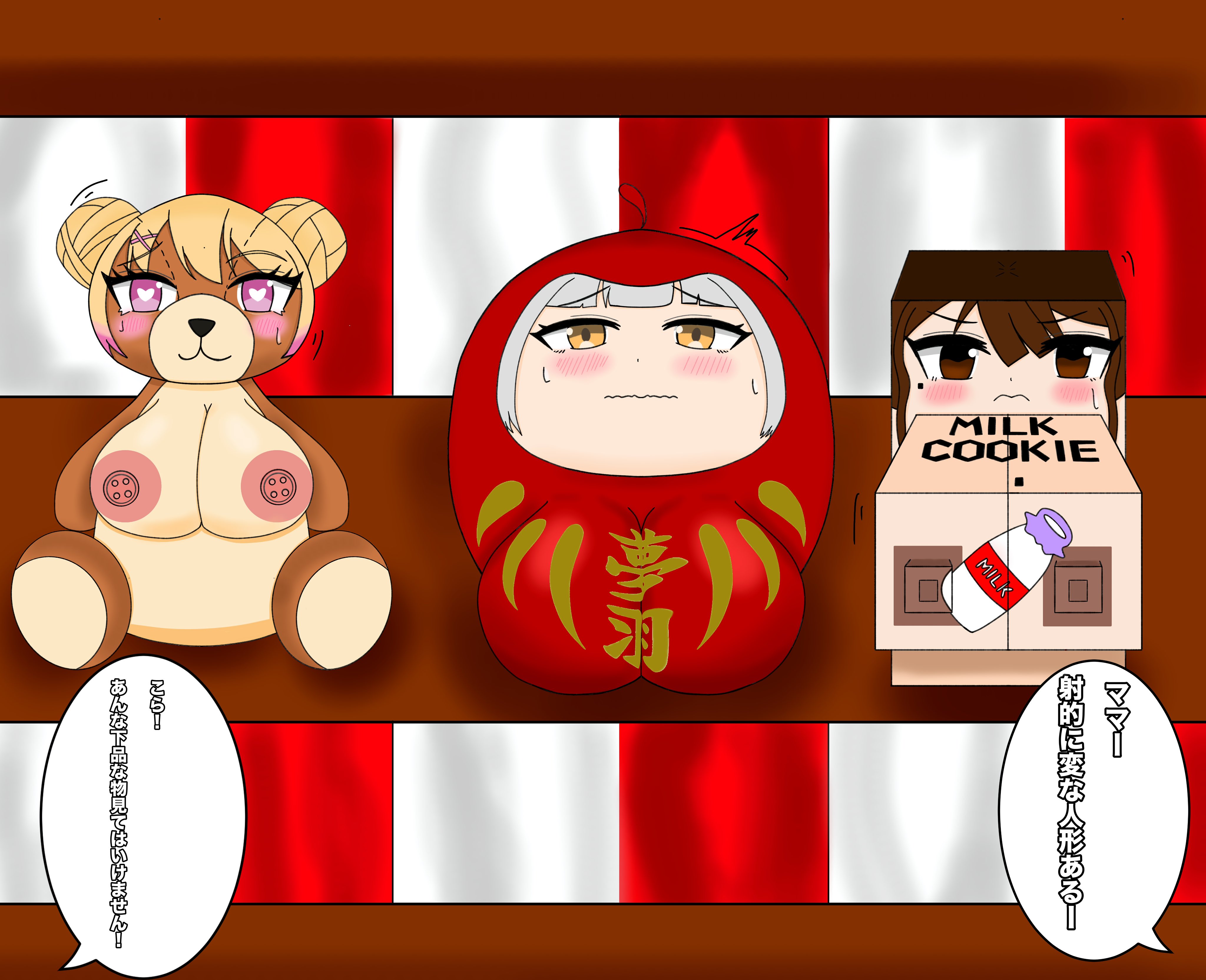 むーさんの夢羽ちゃんと陽華ちゃんとうちの子凛化さん3人の射的の景品化描かせていただきました!!