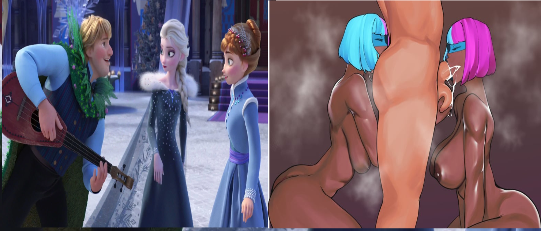 Requesting Anna and Elsa giving Kristoff the blue plate special.