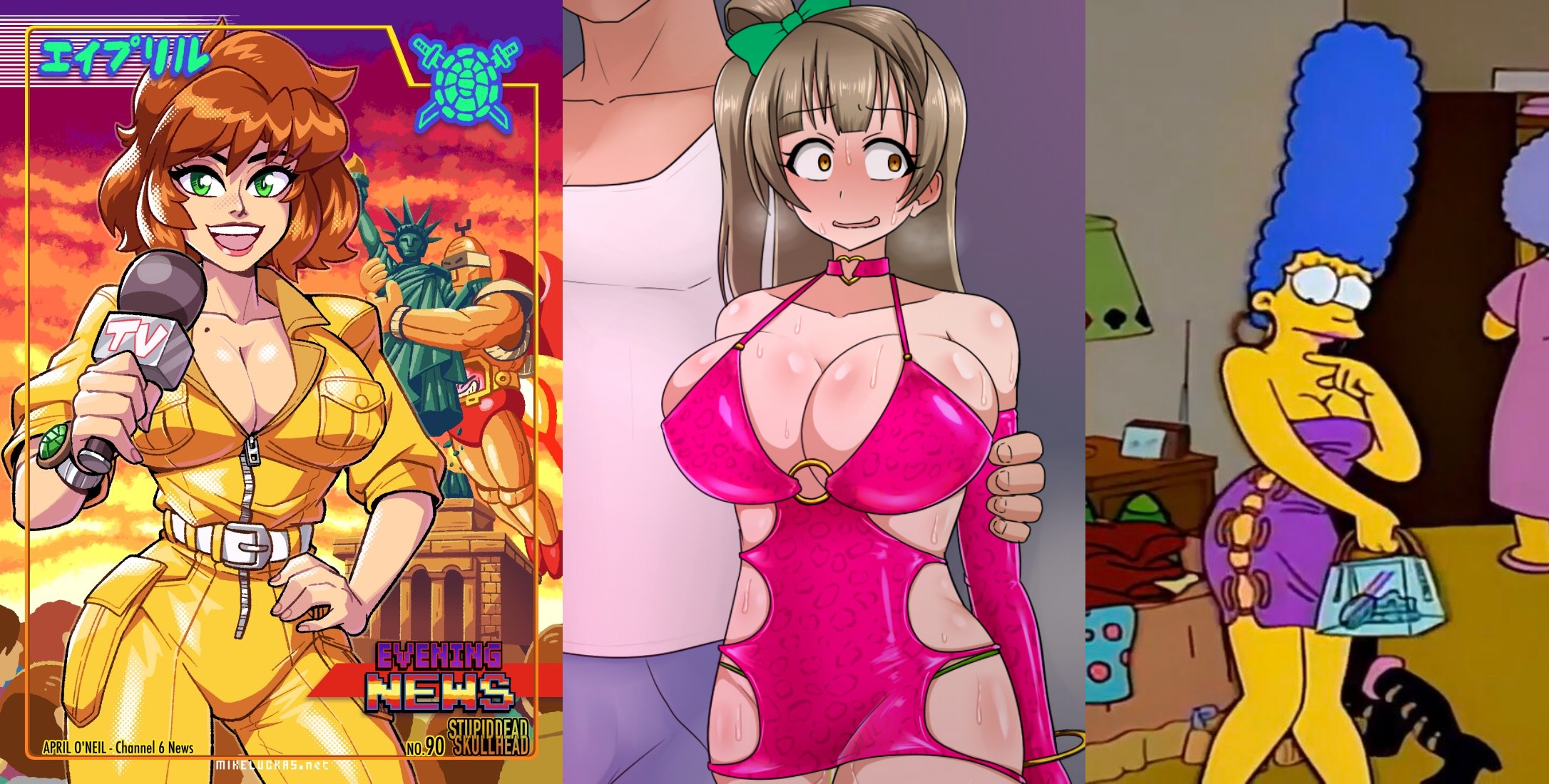 Requesting 80s April giving a special "undercover" report on prostitution as she poses as a prostitute but is still in reporter mode; followed by a camera crew, holding a microphone and introducing herself as April O'Neil for channel 6 news.Have her wearing a super slutty dress that shows off her tits getting propositioned by a John with her giving her press credentials and telling him not to worry that his face will be blurred to protect his innocence.If you are willing to do more then another pic of her sucking his dick while holding up the microphone to him while he answers a question she asked him. Or an after sex pic of her on her back, covered in cum, talking to the camera saying "and there you have it folks, a brief glimpse of the city's dark under belly. Tune in next week for part two of this on going story!"