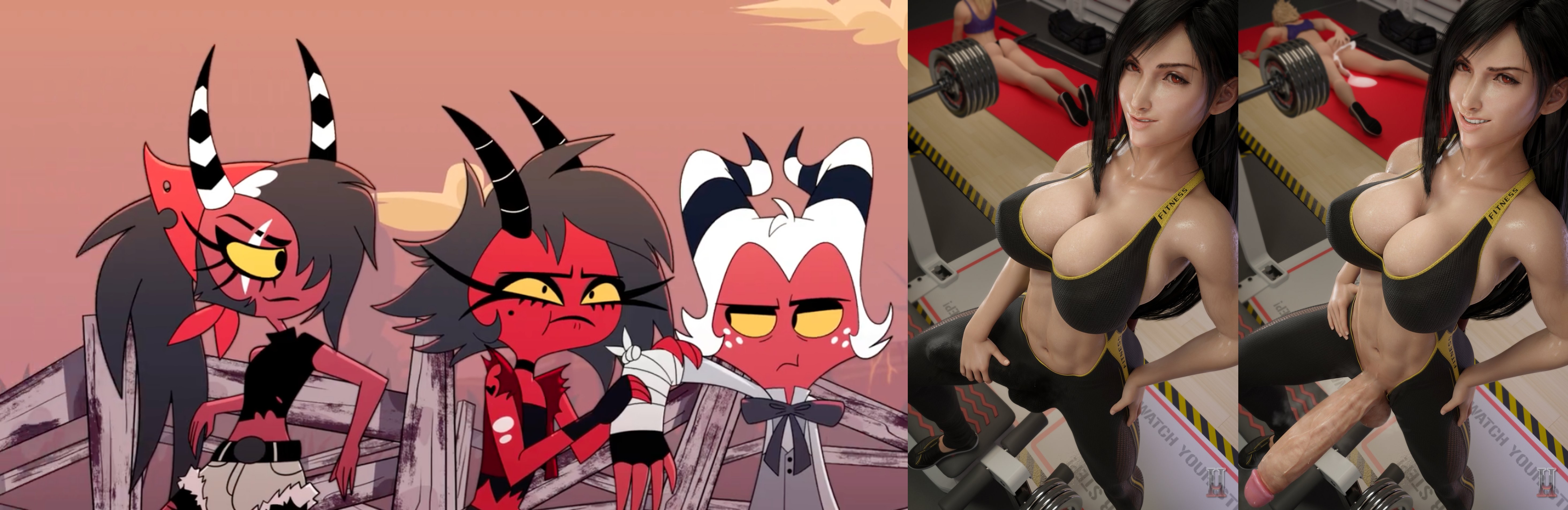 Requesting Sallie May taking a couple of gym selfies like the Tifa pics with Moxxie in the background