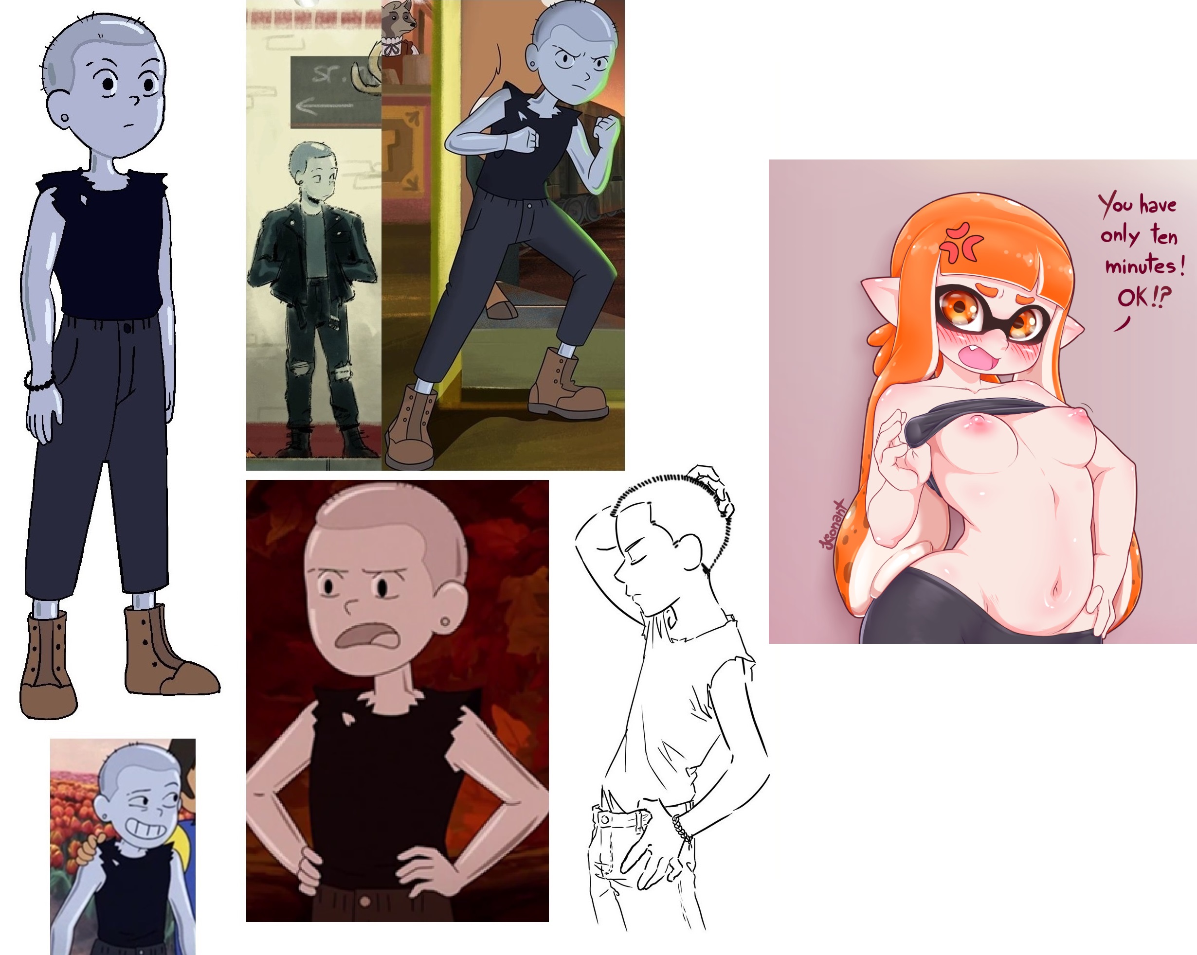 Requesting Lake, from Infinity Train, doing like in the image on the right. Not in her regular clothes, but wearing what the Inkling is wearing.