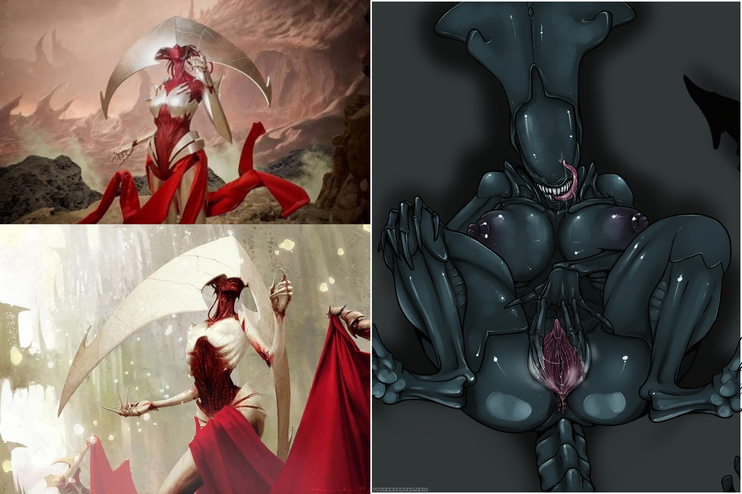 Requesting Elesh Norn spreading her pussy like the xenomorph queen on the right