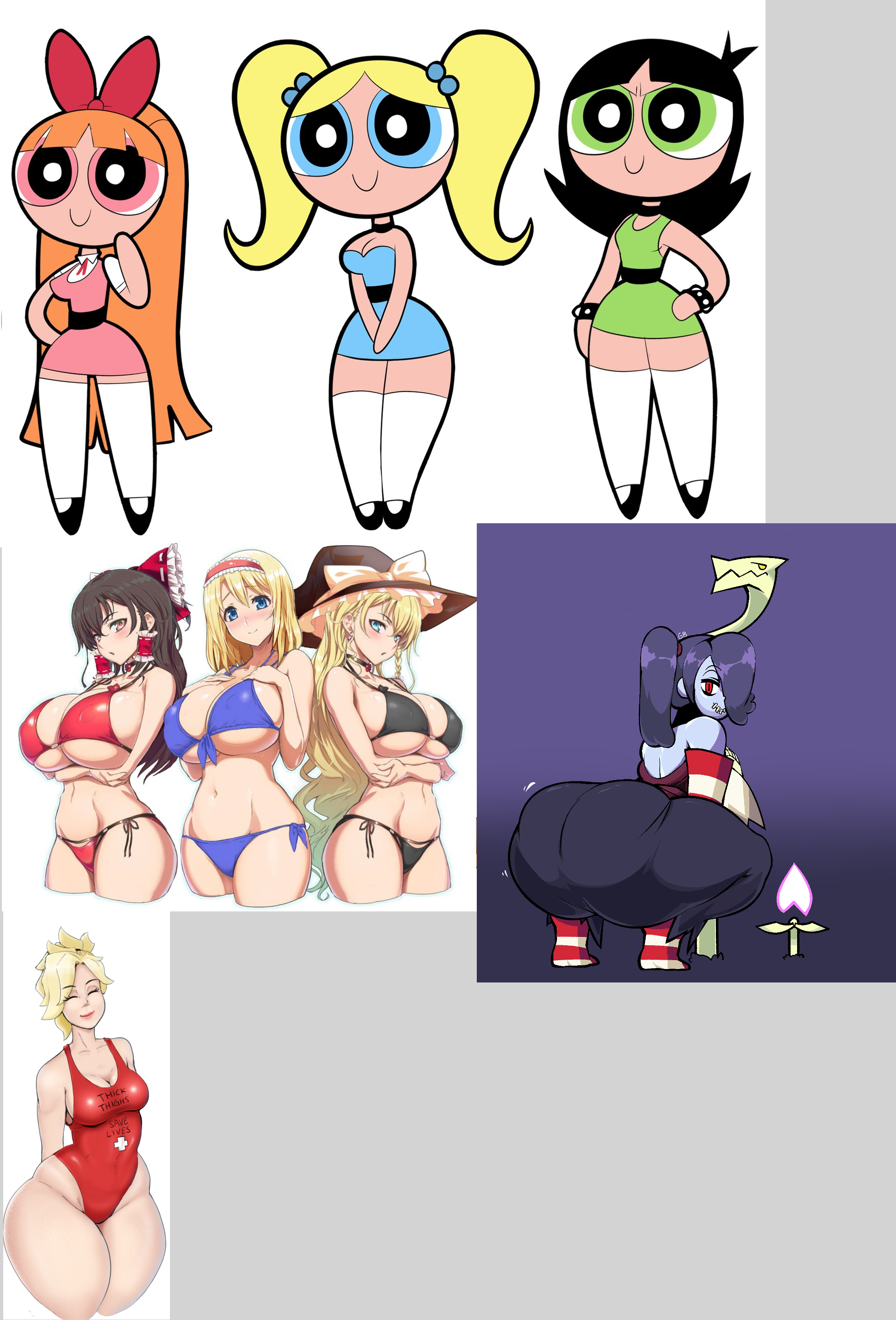 Requesting one or more of these aged up Powerpuff Girls showing off their tits and/or ass in revealing swimsuits.
