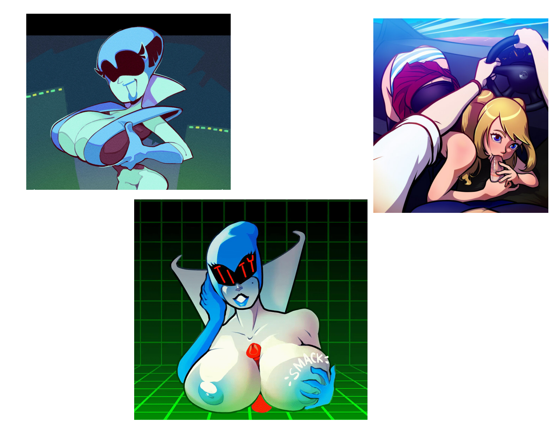 Requesting Sapphire getting insta lossed, being annoyed that she has to wear the outfit on the top left for a human just to get fucked by him (she'd also have huge tits that can barely fit in her outfit, and if possible, keep the nipple piercings from the bottom ref)