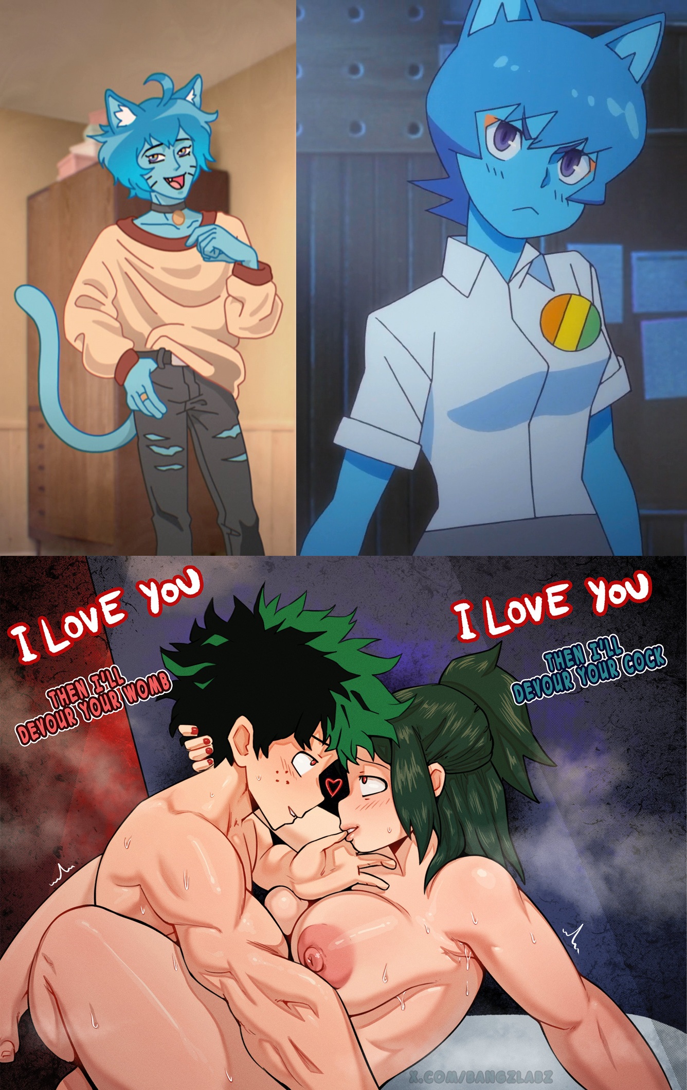 Requesting Amity Blight and a male having sex while Luz Noceda gives her a tenderly romantic kiss