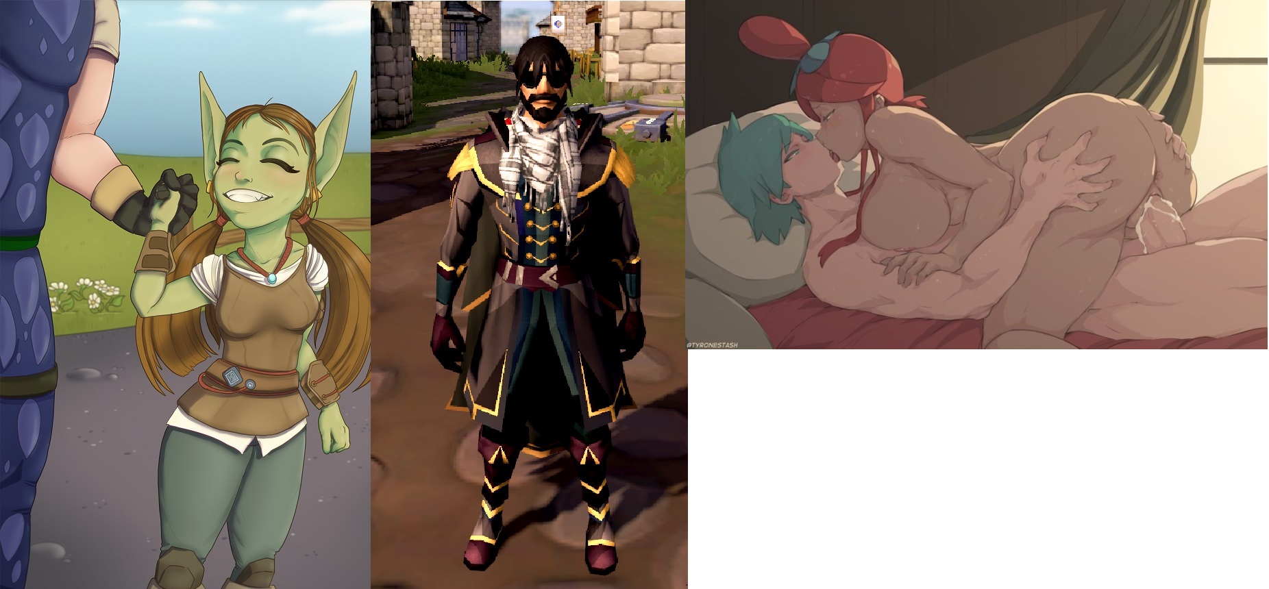 Requesting Zanik and the World Guardian from Runescape having wholesome romantic sex like in the reference.