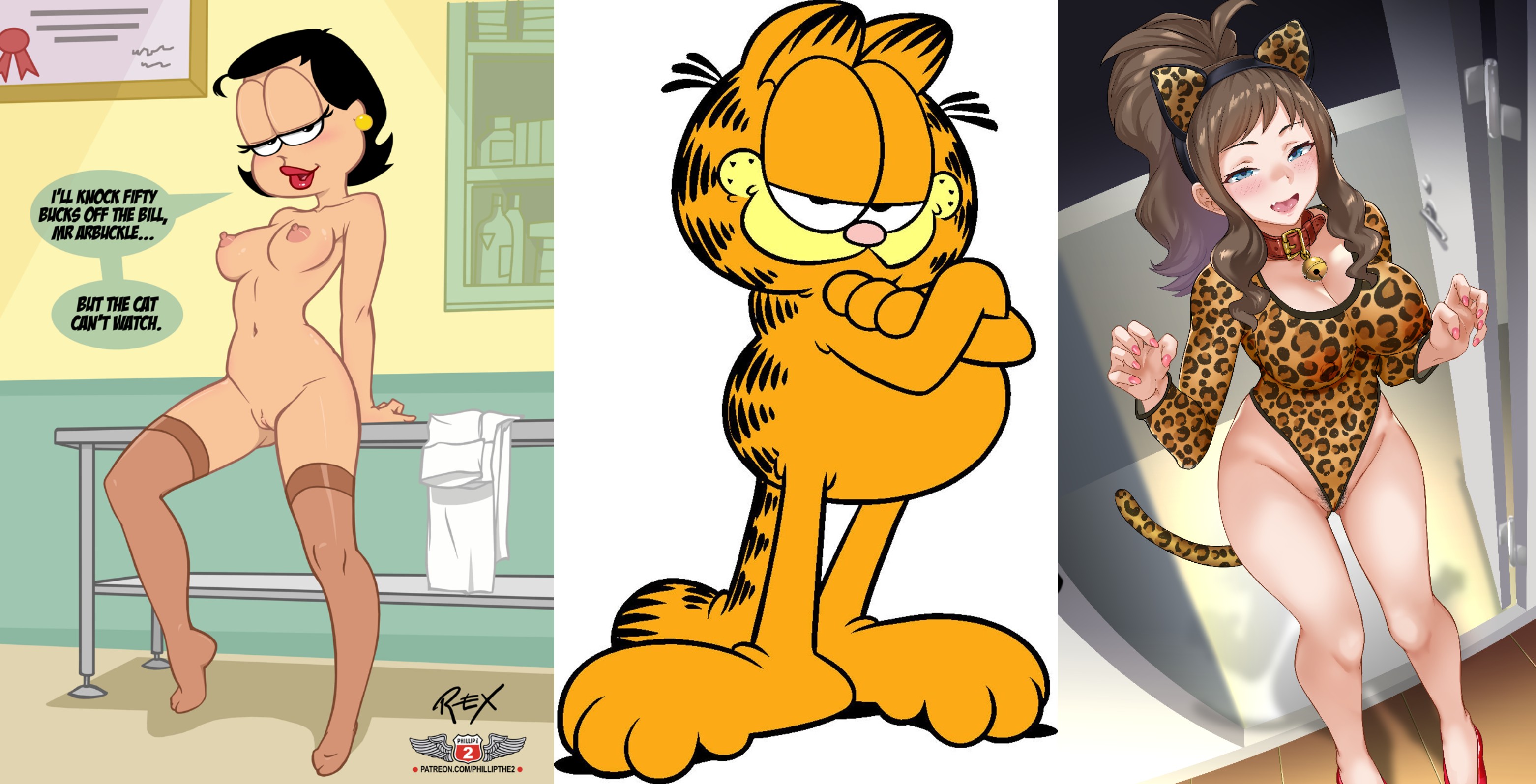 Requesting Liz Wilson, Jon Arbuckle's girl friend, wearing a see through cat costume based off of the one on the right but make it Garfield themed.