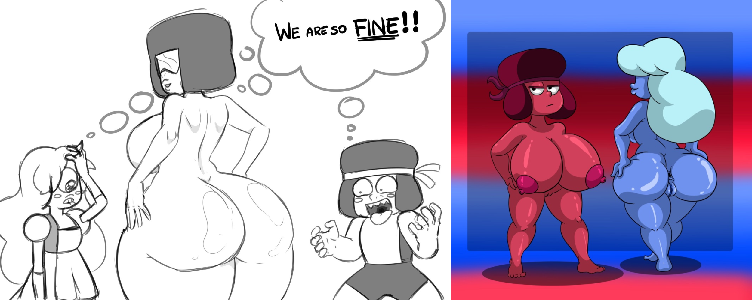 Requesting naked Ruby and Sapphire in the Garnet form admiring each other's bodies