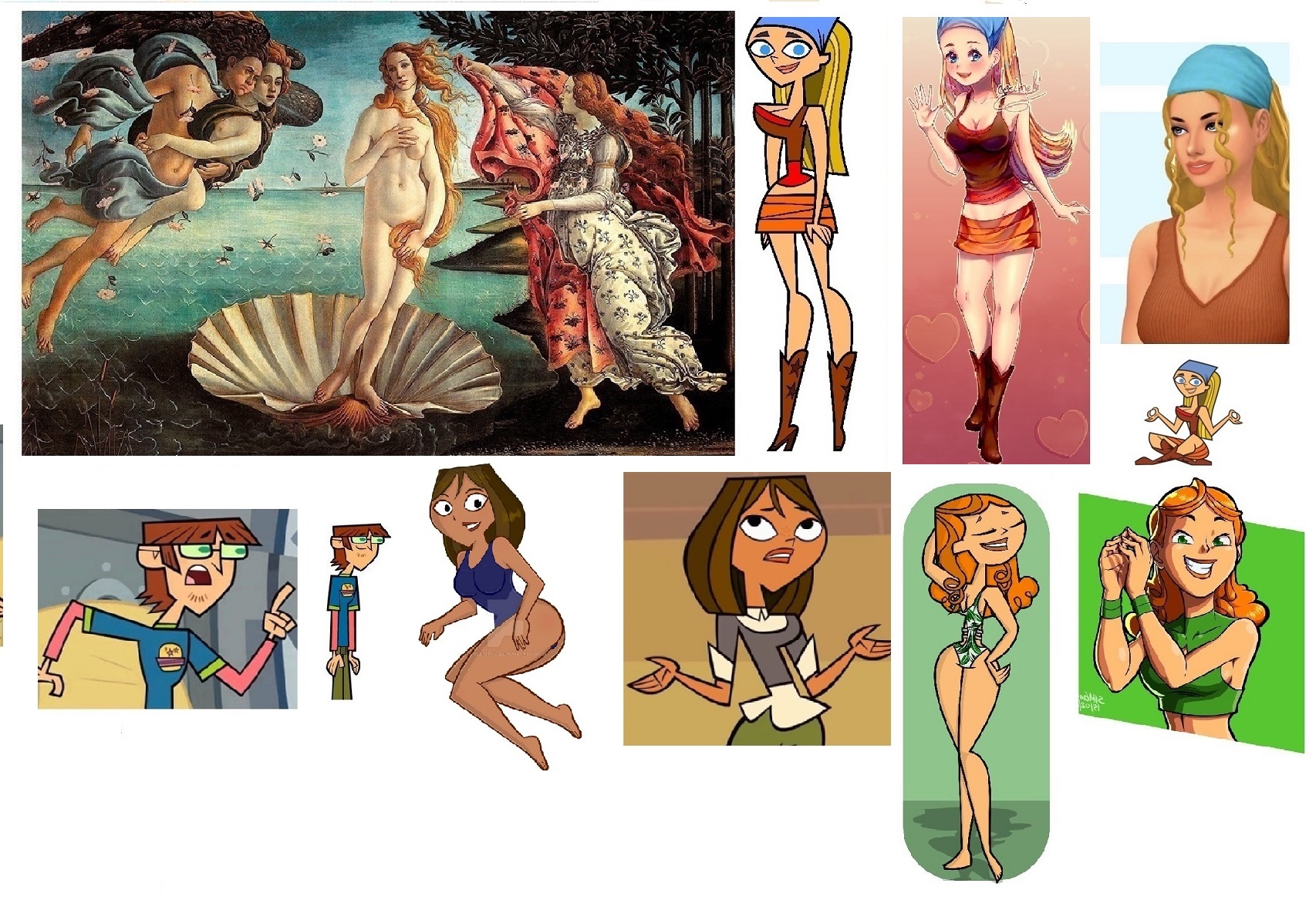 Requesting Lindsy replace Venus in this classical painting. (she can keep her cowboy boots on).If you feel like more than one figure could you put Izzy in the place of the woman on the right (although maybe make the wrap a beach blanket)and (possibly) replace the breezes with Courtney and Harold. (or just their winged heads as cherubs)