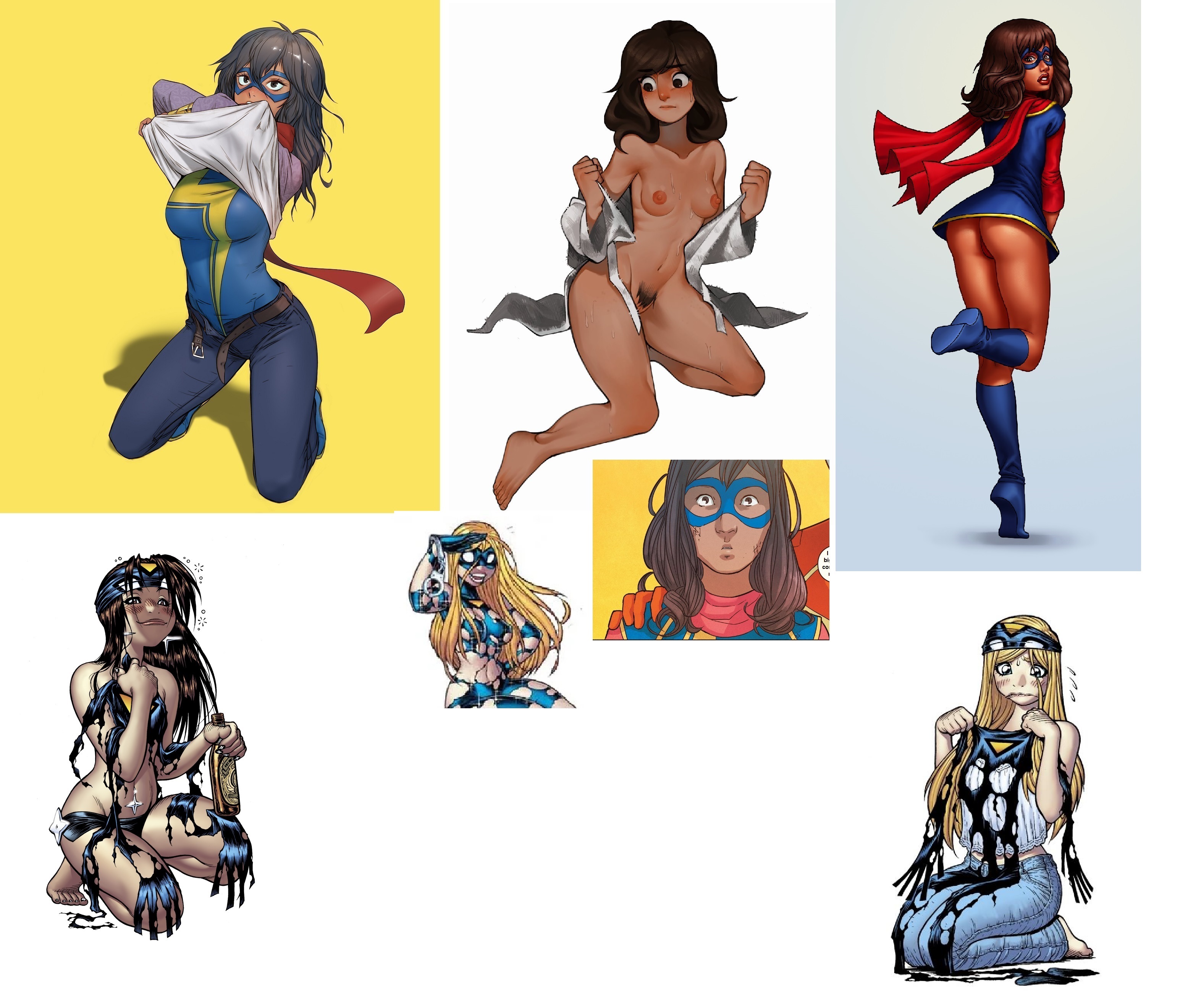REQ: An Embarrassed Ms.Marvel trying to retreat from a situation (social or otherwise) . Her costume in a ragged situation similar to that in Empowered.(maybe with her complaining about the suit.)