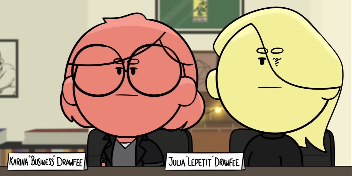 >>9145569>>9145894I never watched Drawfee, but an animator named DeepBlueInk popped up in my youtube recommended and I watched all of his Drawfee cartoons. Now I want to see Karina and Julia getting their cheeks clapped in his art style.