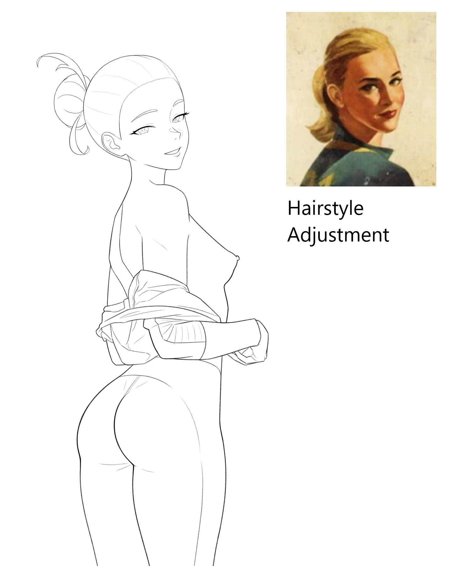 Request for Sarah Weintraub's hair to be ponytail.Also maybe coloring her vaultsuit and nude body.