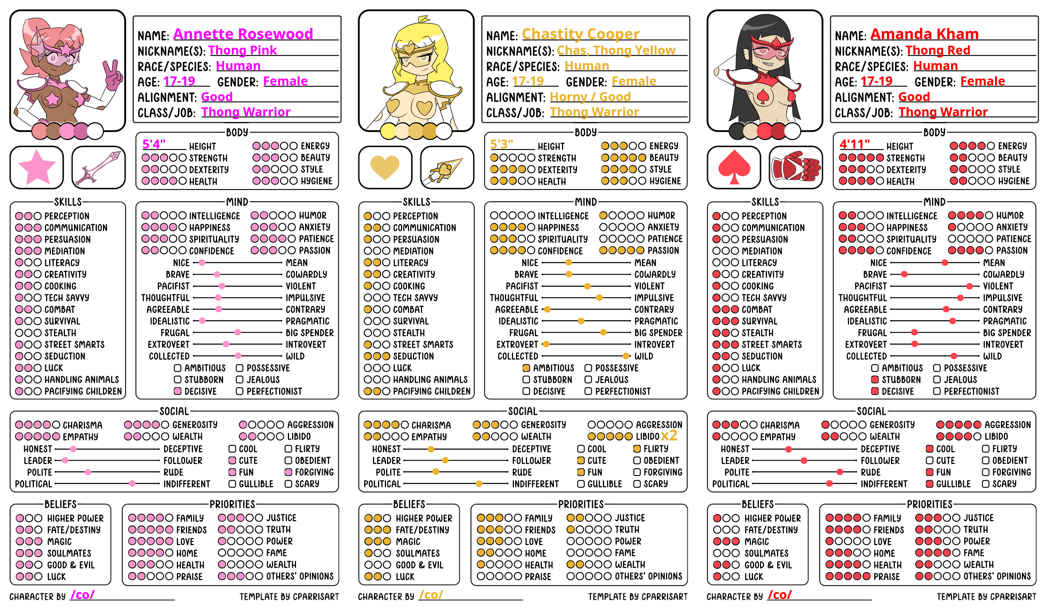 >Exiled from the Kingdom of Assaheim on the planet of Babeula by her evil aunt Regulita, Princess Cleo and her fat-assed cat maid Flufflepon land on Earth. Bestowing the Thongs of Power onto five ordinary girls, they now fight evil as Thong Squad! Cheeky defenders of justice; they face such foes like Stallion Maximus the Rapehorse, tentacled NEET Megusta, bewitching burlesque dancer Ashe Arcana, and above them all the Dark Kingdom. Led by Queen Regulita they seek to conquer Earth and capture the princess. Leading their forces are the Dark Generals and Thong Void, grumpy goth warrior.