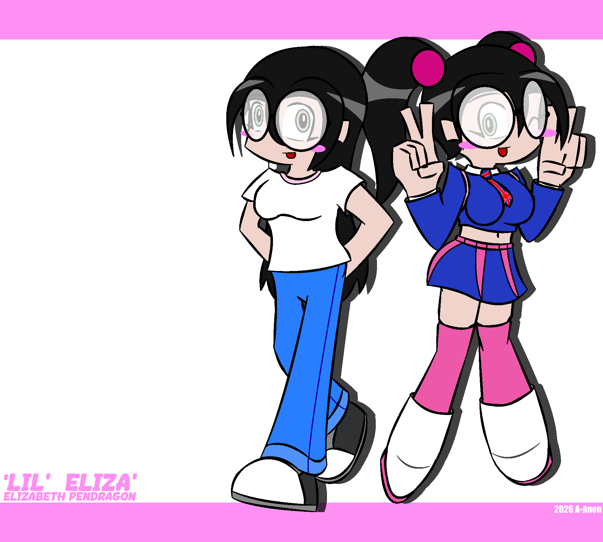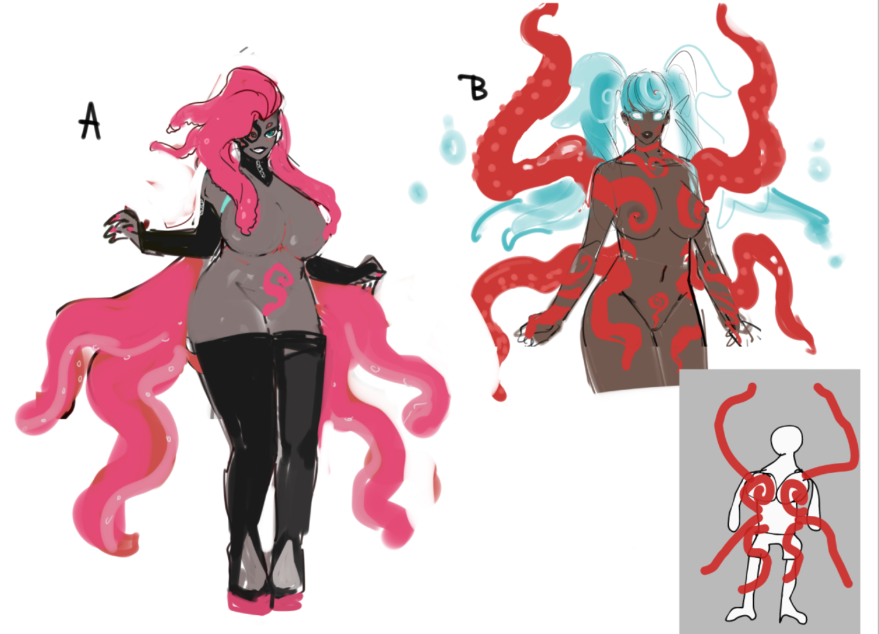 for this one, i'm going by the idea i had where the Squads first battle with Ashe would be her and Pink only. mainly made in a classic comic cover style. i had an idea of making covers of the episodes of the squad featuring the characters i had made.