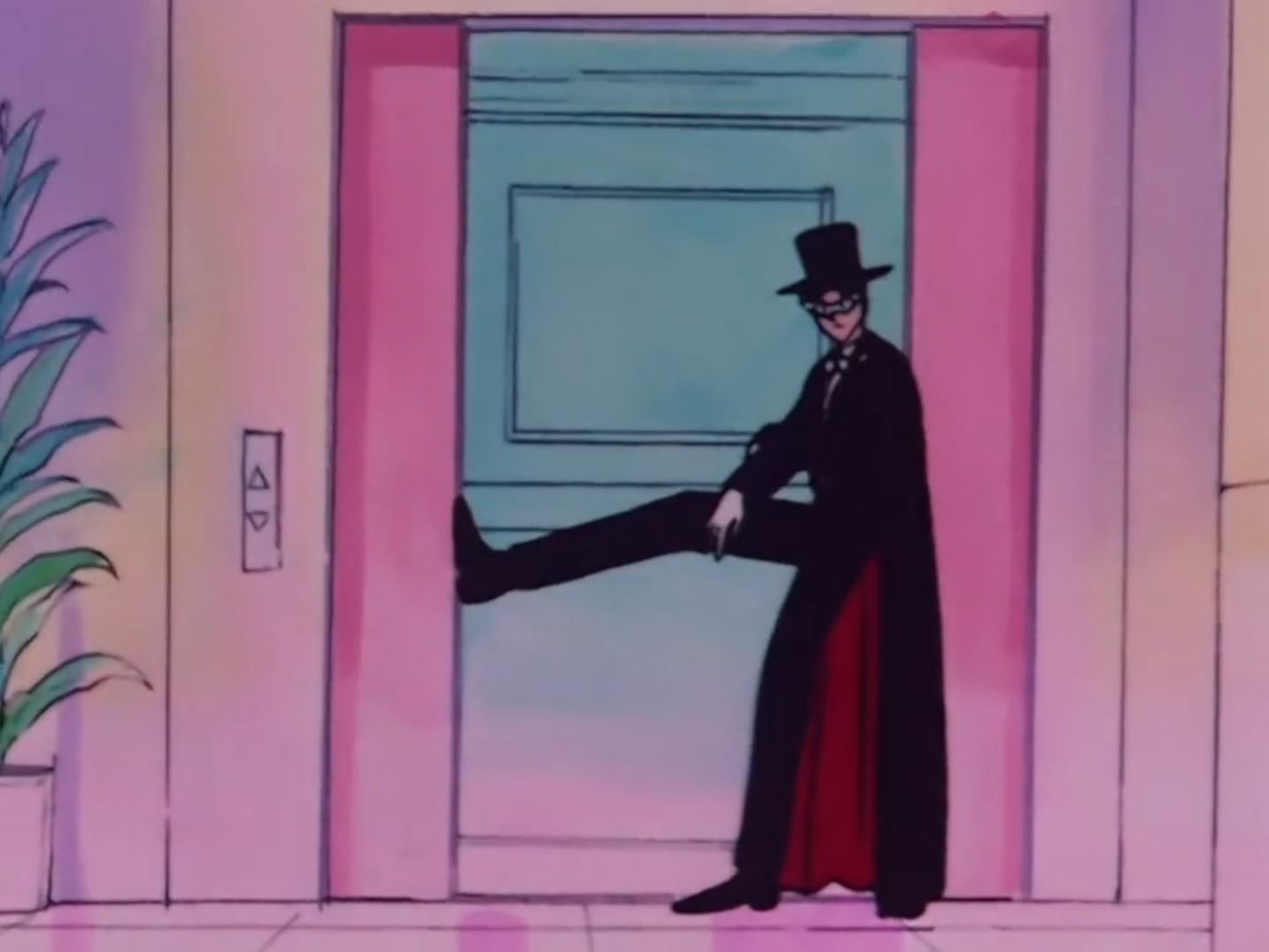 That's just 90's English dub Tuxedo Mask. It really amazes me how the adult parody is more useful than the source material