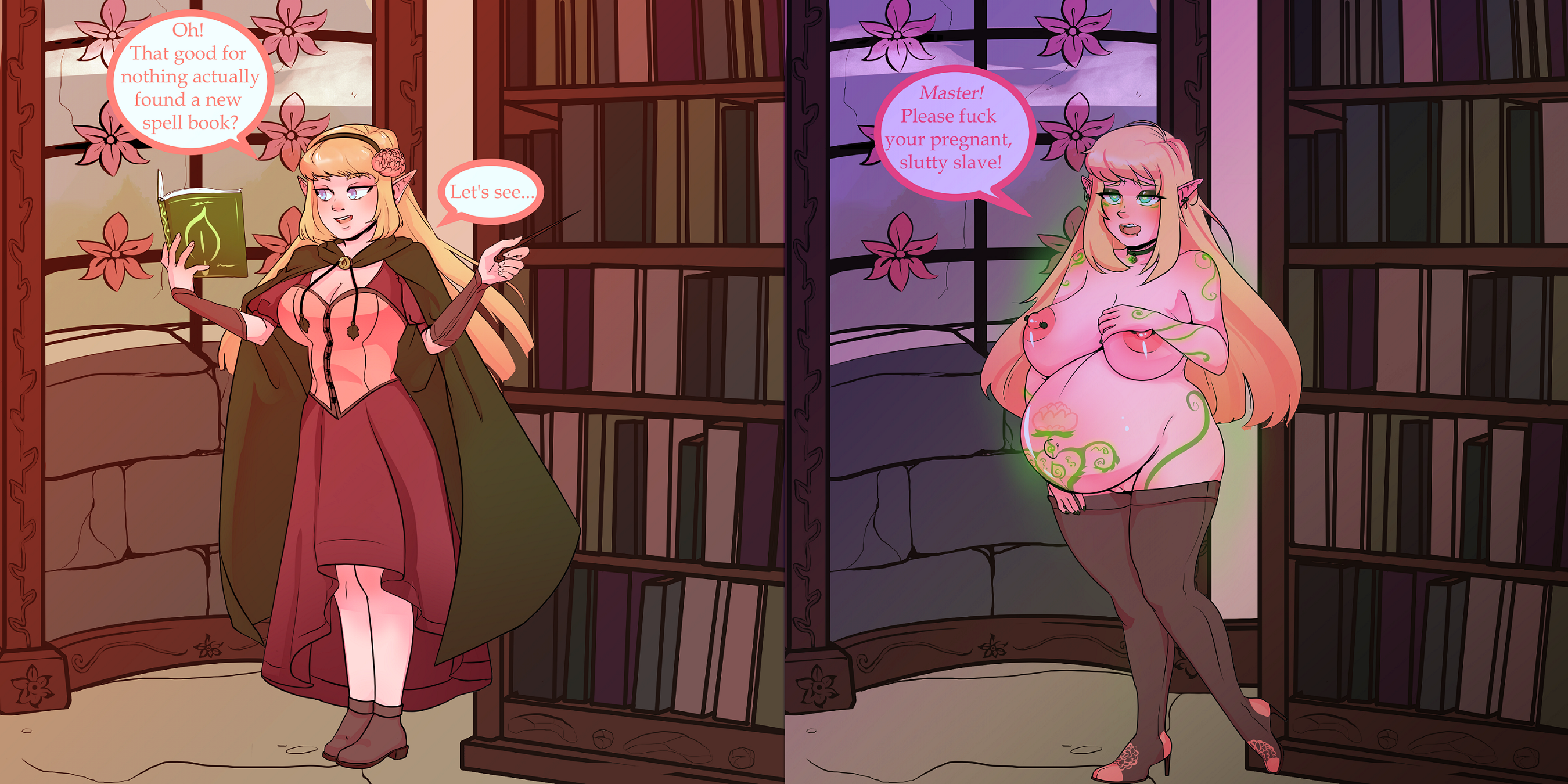 >>9182955Not permanently, I'd say. Change her into a preg-obssessed bimbo then turn it off and let her settle into a halfway point between her old self and new.>>9184327Like how you can see which parts of Seran's old clothes were changed into her bimb clothes.