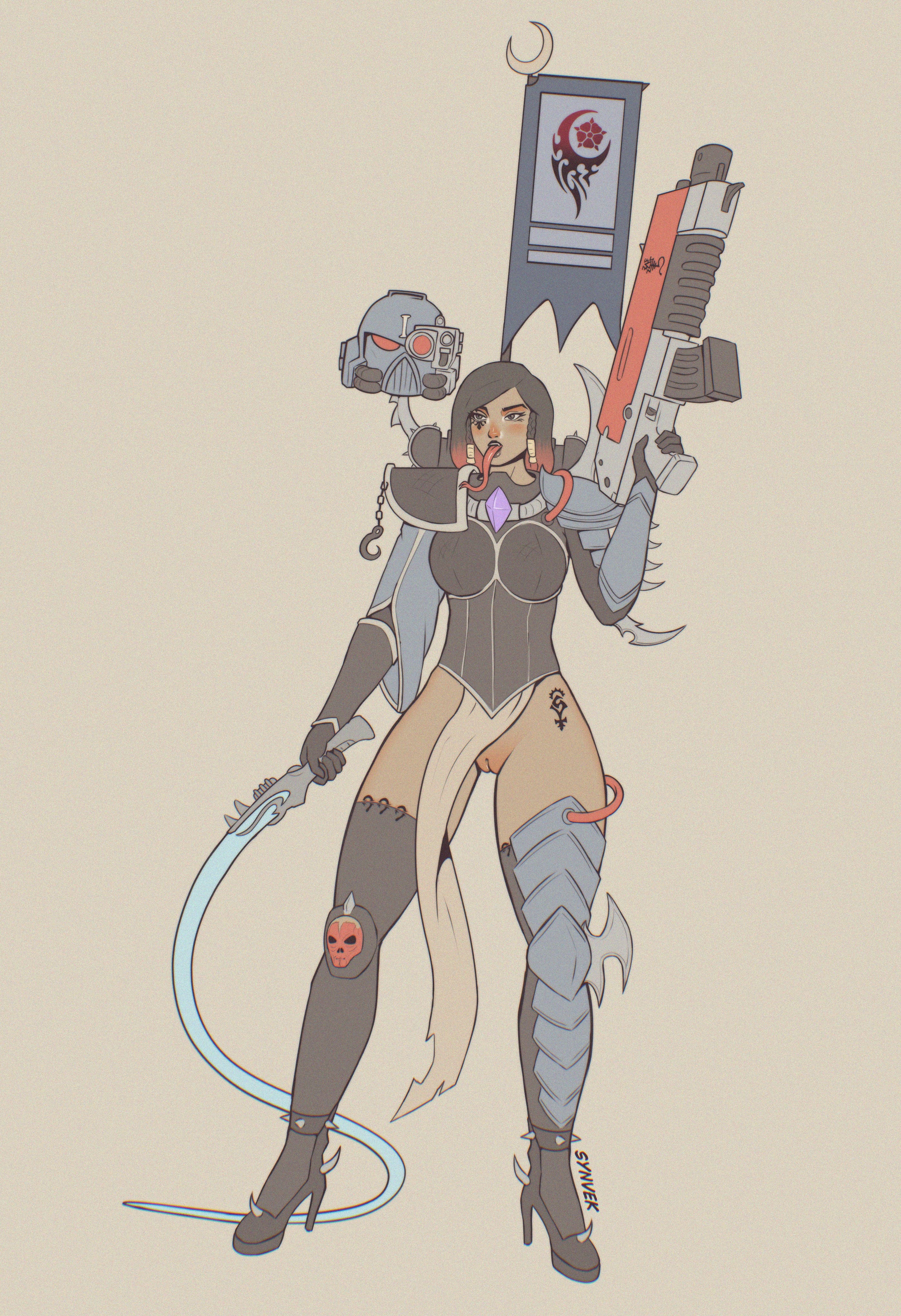 >>9169074>>9168395>some of Maeldrazor's Syrens were dissatisfied with the number of whore-mon-keigh allowed to serve in the wych cult, and one of them attempted to kill Laeckhairiya. In a hard fight Laeckhairiya cut off syren's both her legs and arms and then cruely tortured with a eviscerator. Then she cut off syren's ears and tore her womb, and with these "trinkets" she offered to Maeldrazor her services as a new syrenAnd a little more bits to your question>in an effort to find new faith and meaning in life, sororitas began to worship Khaine as a god and Vect as his messiah in the Dark City>for first times, they were used as emotional support mon-keigh, but after proving themselves, girls were entrusted with their own combat missions during raids, mainly terrorizing the target population>however, if dark eldar intrude into the Eye of Terror (Maeldrazor gained much profits carrying out this operations in Vect's interests), sororitas self-flagellation and torture intensify, so that deldars do not feel Slaanesh's influence on their souls>Laeckhairiya and her chosens were part of the cult's arena performances. Although they were more clumsy than eldars, sight of a sororitas murderesses with torn flesh and specifically torment devices, got their own audience well enough to allow Maeldrazor to approve Laeckhairiya's first own successful performance>Some sobs and their masochistic desires proved so attractive to exotic-seeking deldar patrons that they allowed girls to enhance their appearance to suit patron's needs>They can often be found in the cult's brothels and drugs dens, in various price ranges, including Laeckhairiya, who can be found pleasing wealthy patrons. One of them was a Biel-tan autarch, who gifted her his eldar-ish eviscerator as a gesture for pleasfully nightsAs i said, i need much more time to fit this thing up. also want to introduce the living saint pain engine