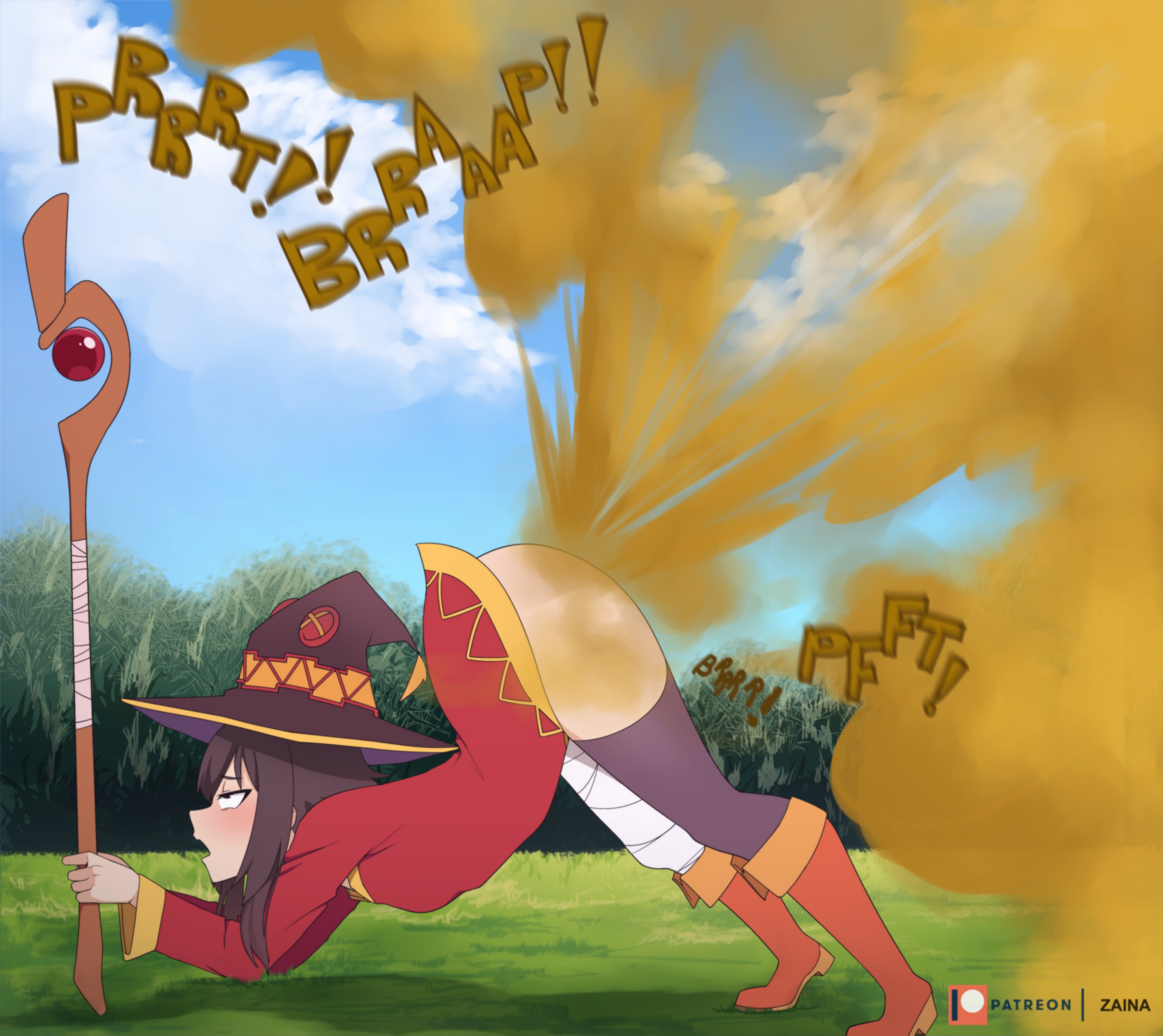 What would you do if Megumin threw one of her "explosions" and fainted, but nevertheless continued to fart with her immobile body, almost involuntarily?