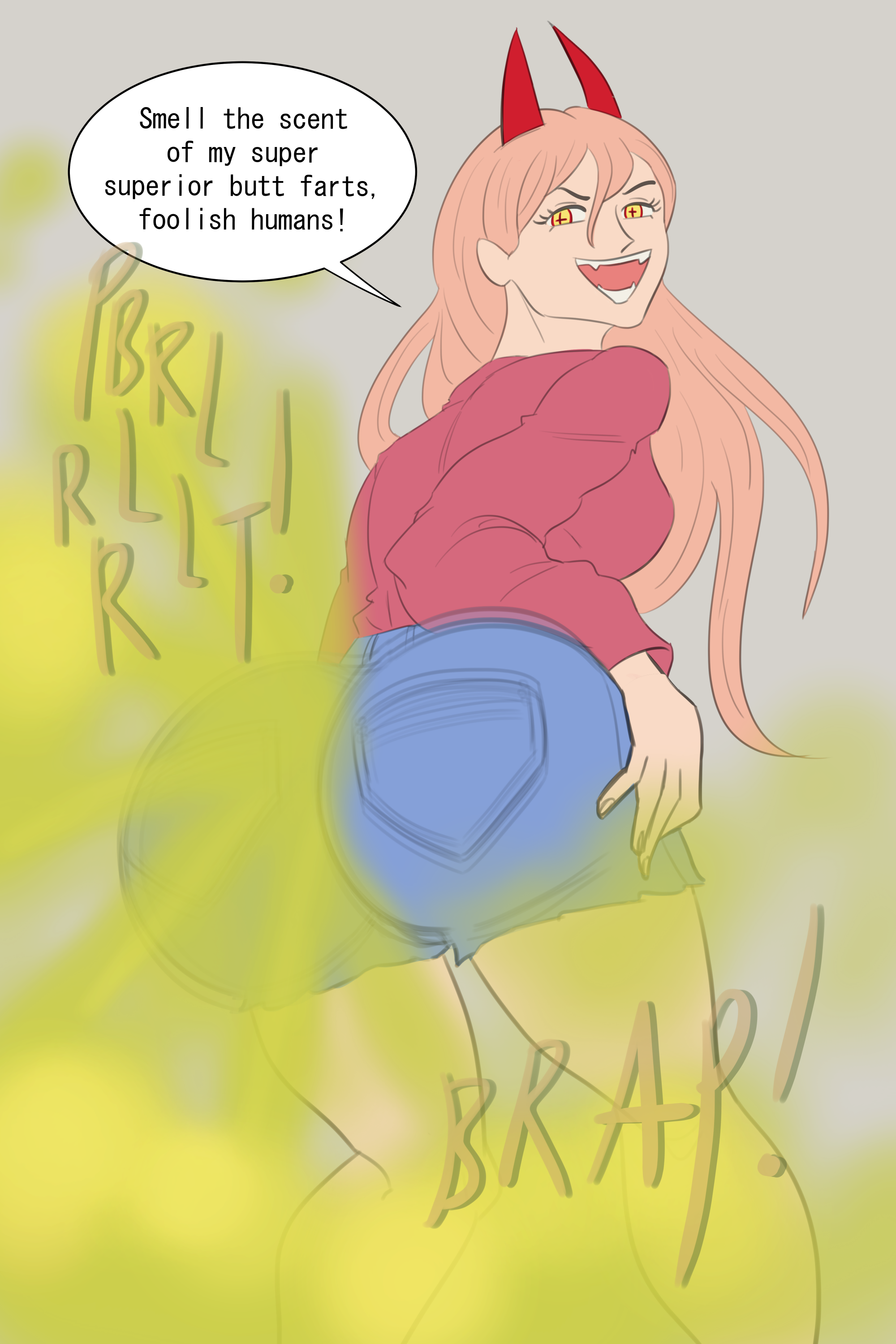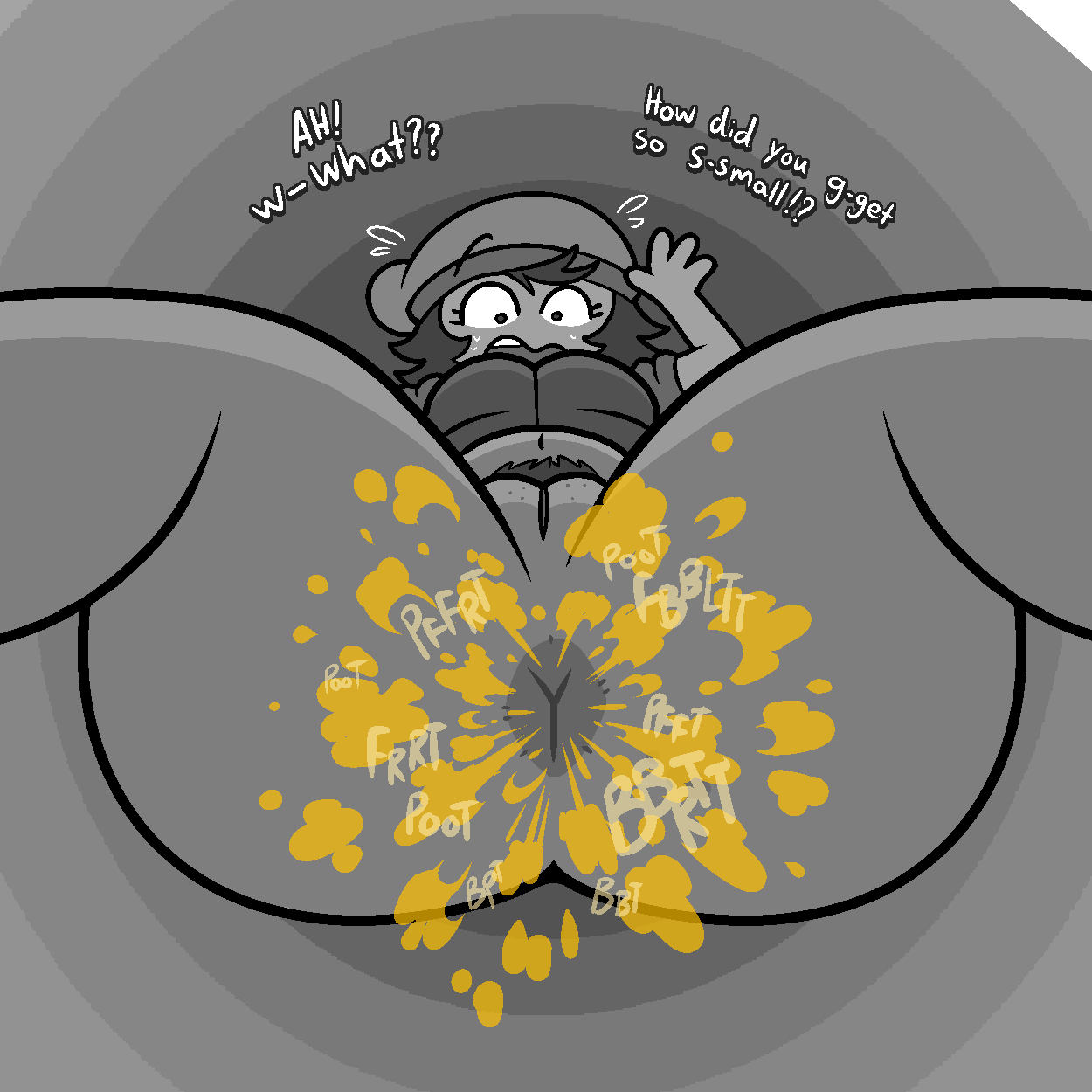 almost none of this is hot to me because of all the gas clouds. this is not what real farting looks like... there are subtler and more sensual ways to draw a fart that you pretty much only find in doujins. really perplexing why "gigantic cloud of green/brown smoke" is the meta here